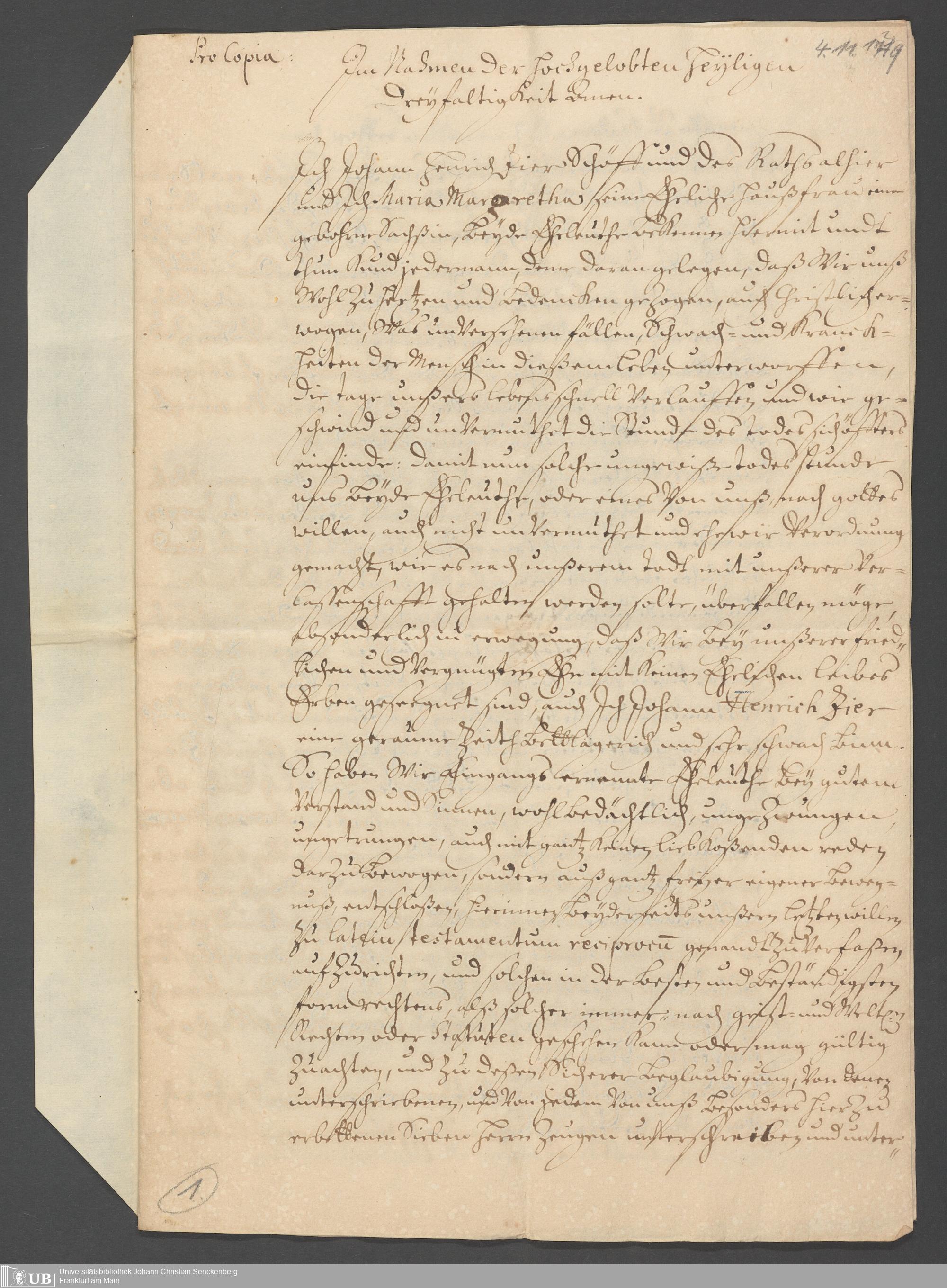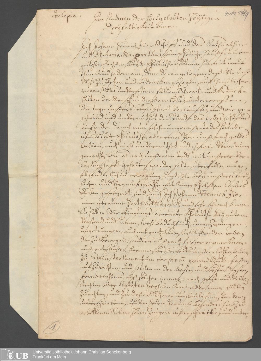 Na 31 Nachlass Johann Christian Senckenberg, 389 - Erbsache Senckenberg/Zierin