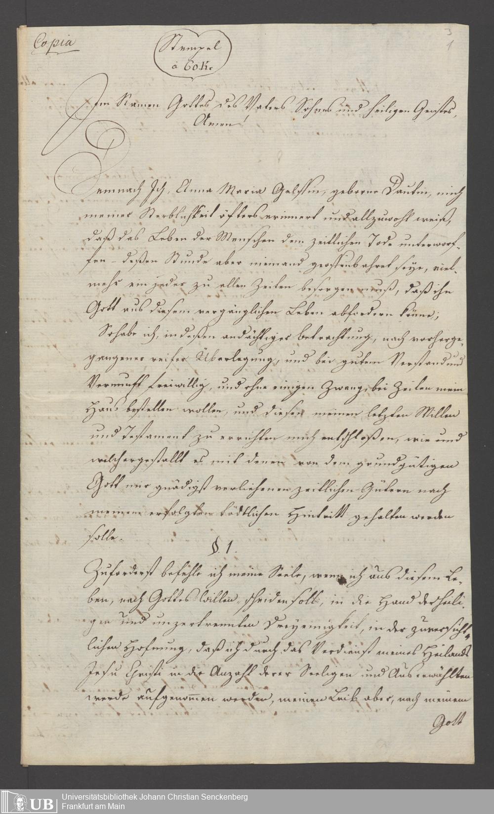 B 5 Dr. Senckenbergische Stiftung, 119 - Testament Anna Maria Gelff