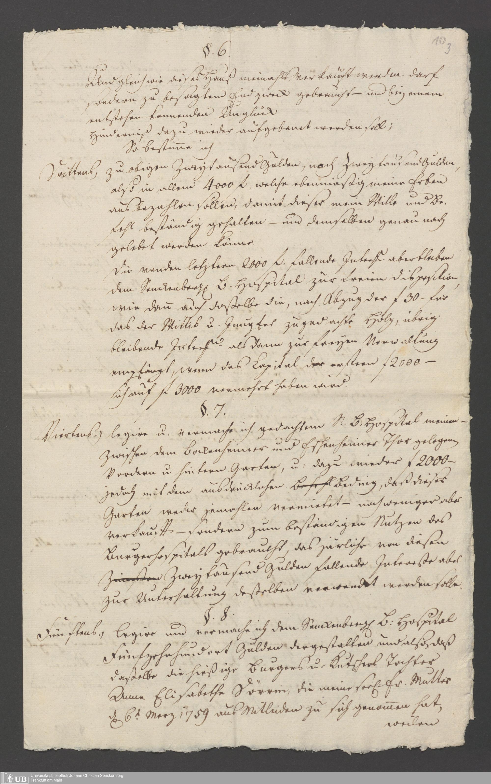 B 5 Dr. Senckenbergische Stiftung, 119 - Testament Anna Maria Gelff