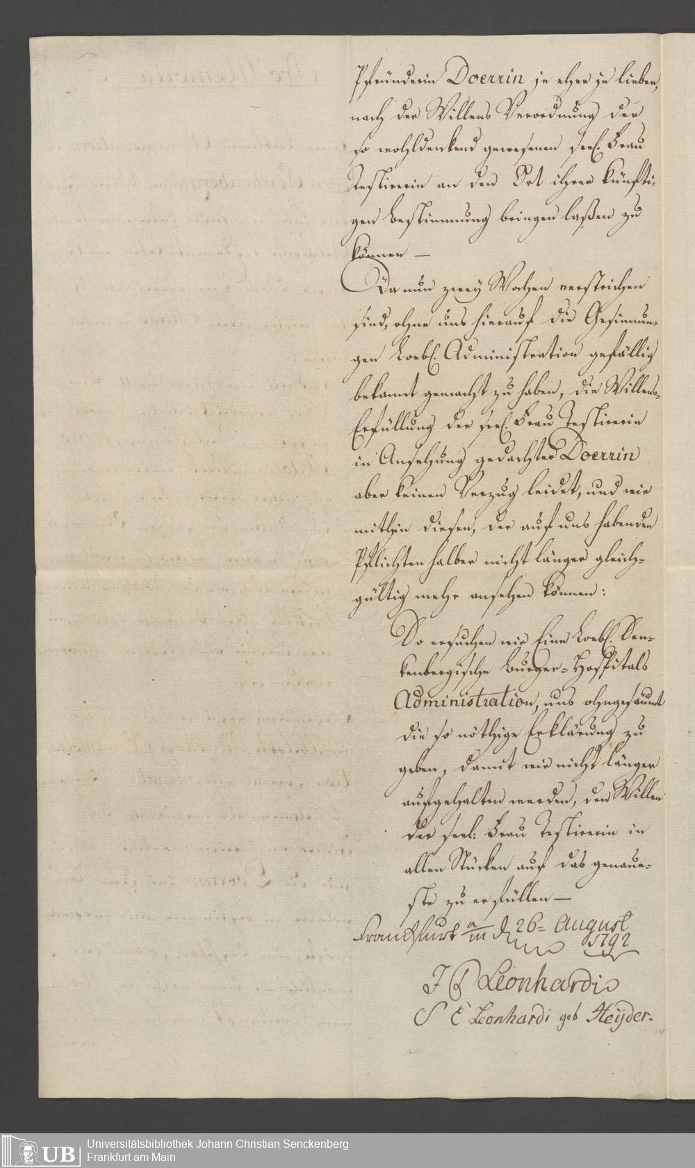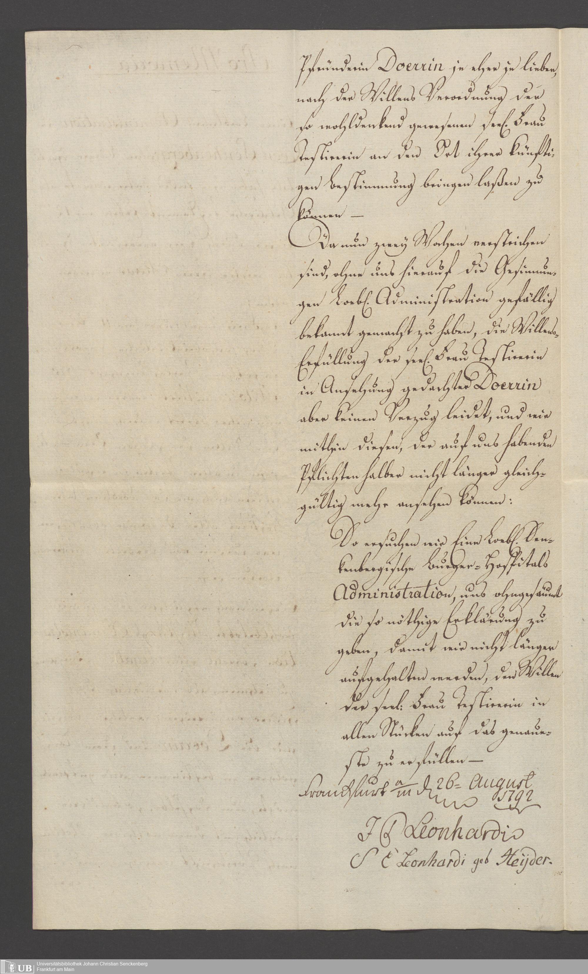 B 5 Dr. Senckenbergische Stiftung, 119 - Testament Anna Maria Gelff