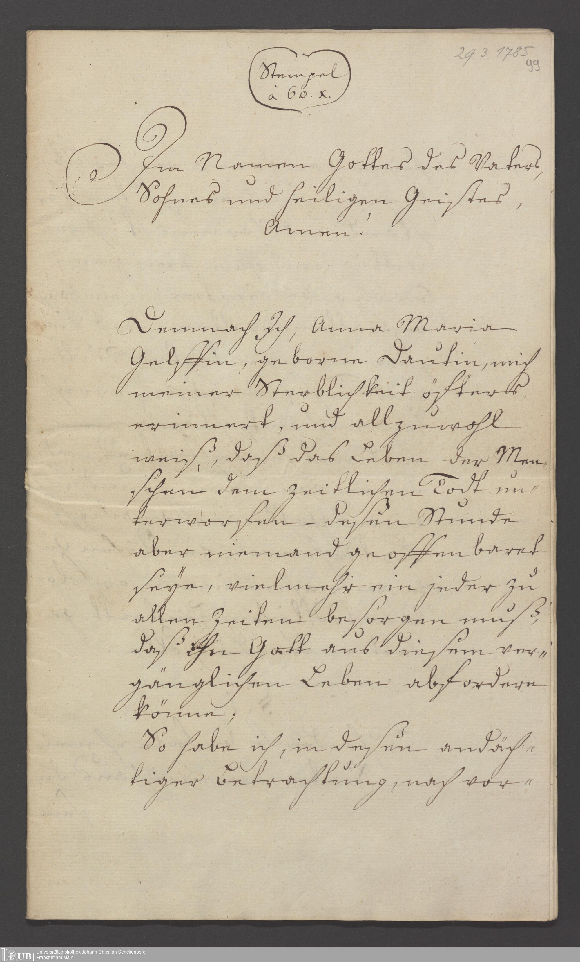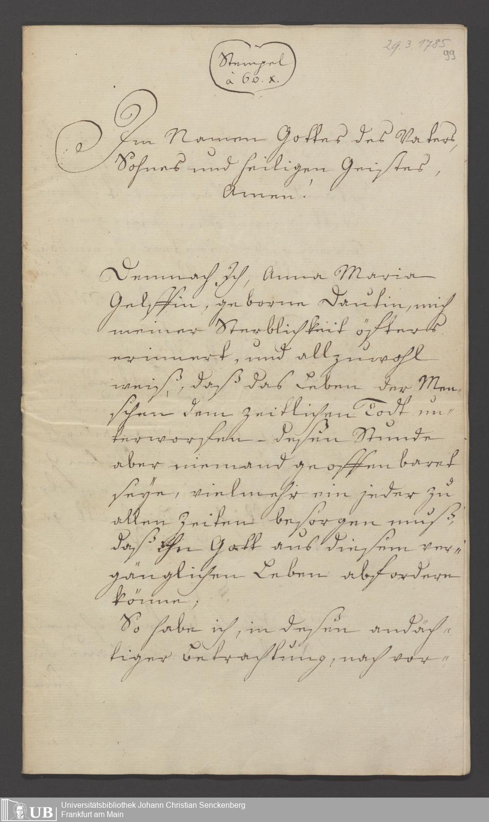 B 5 Dr. Senckenbergische Stiftung, 119 - Testament Anna Maria Gelff