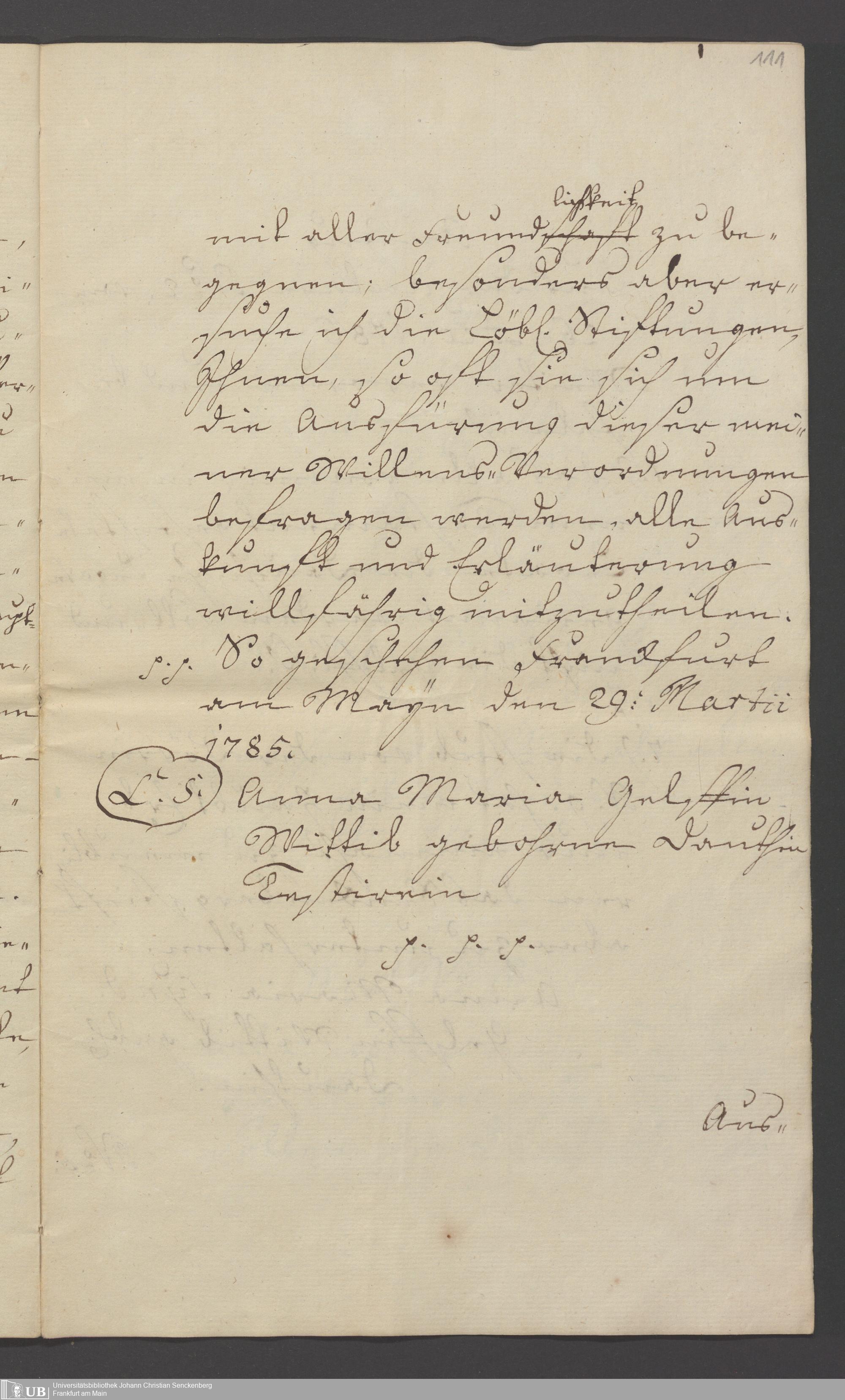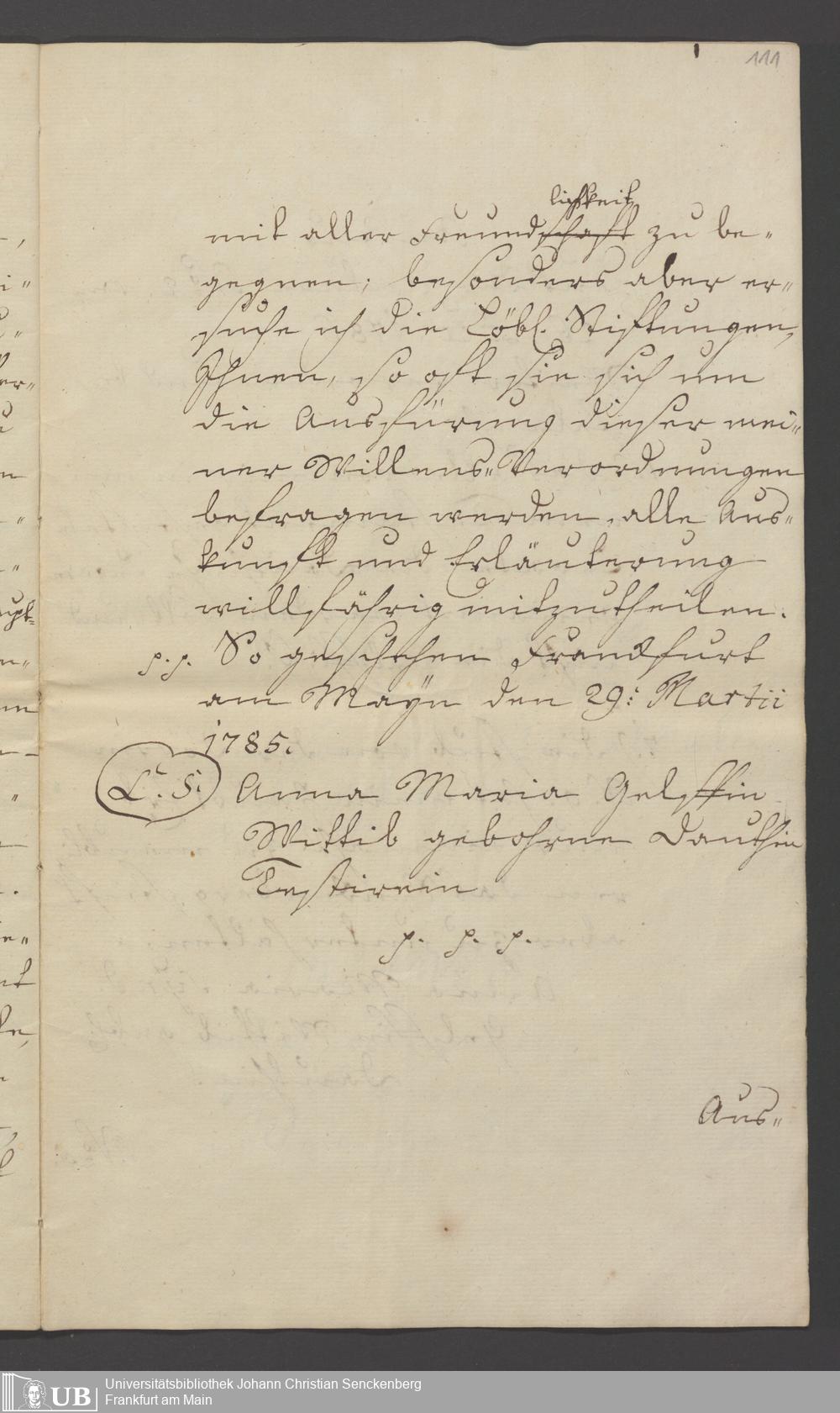 B 5 Dr. Senckenbergische Stiftung, 119 - Testament Anna Maria Gelff