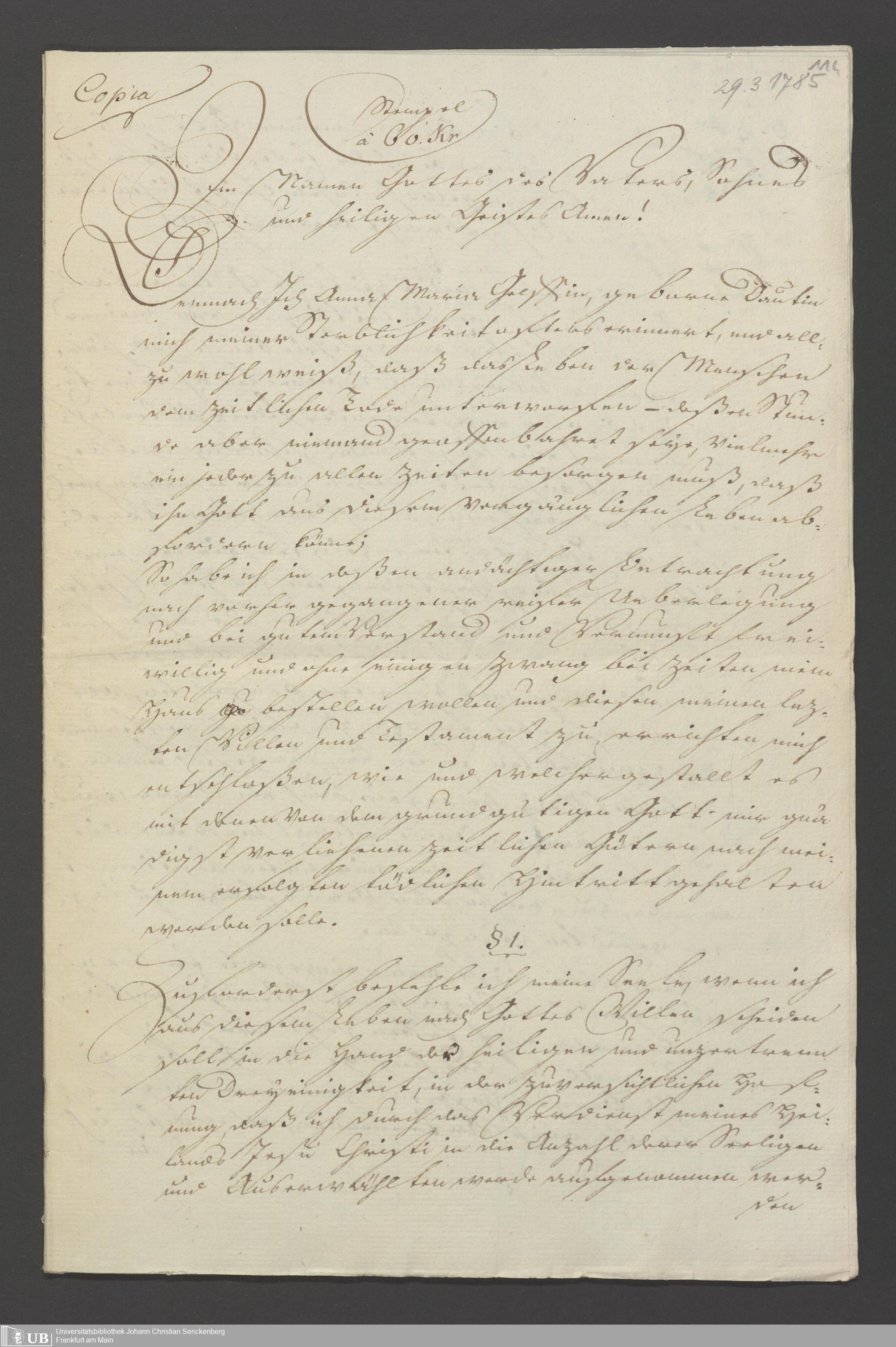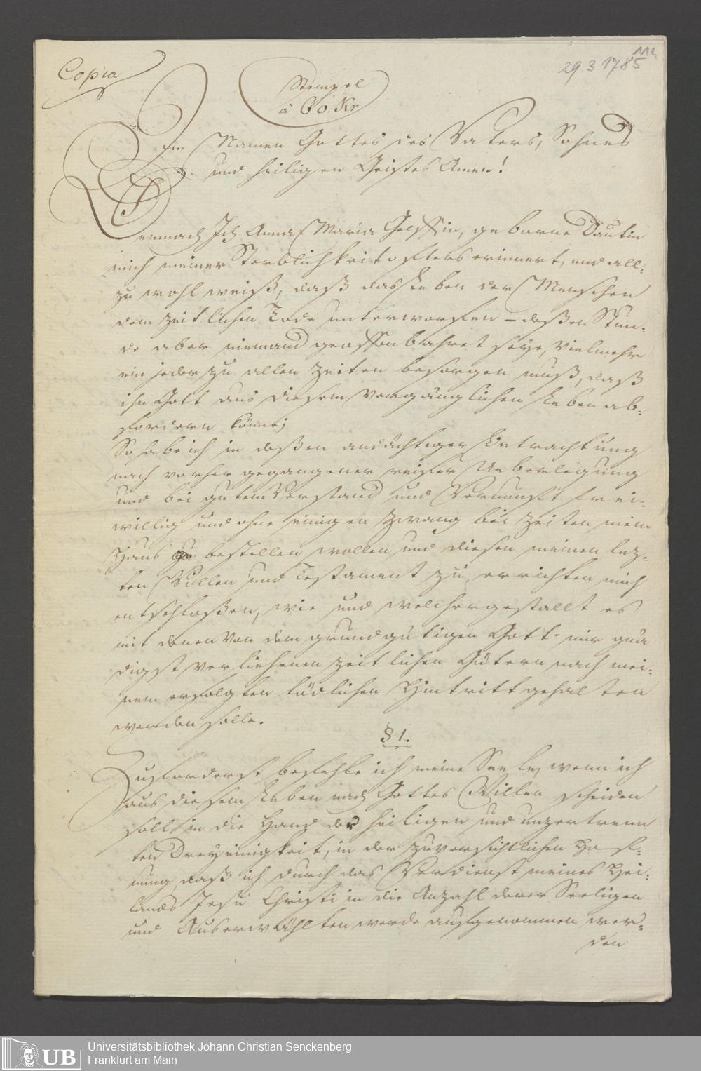 B 5 Dr. Senckenbergische Stiftung, 119 - Testament Anna Maria Gelff