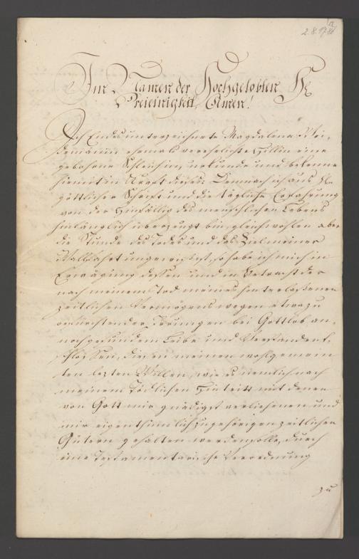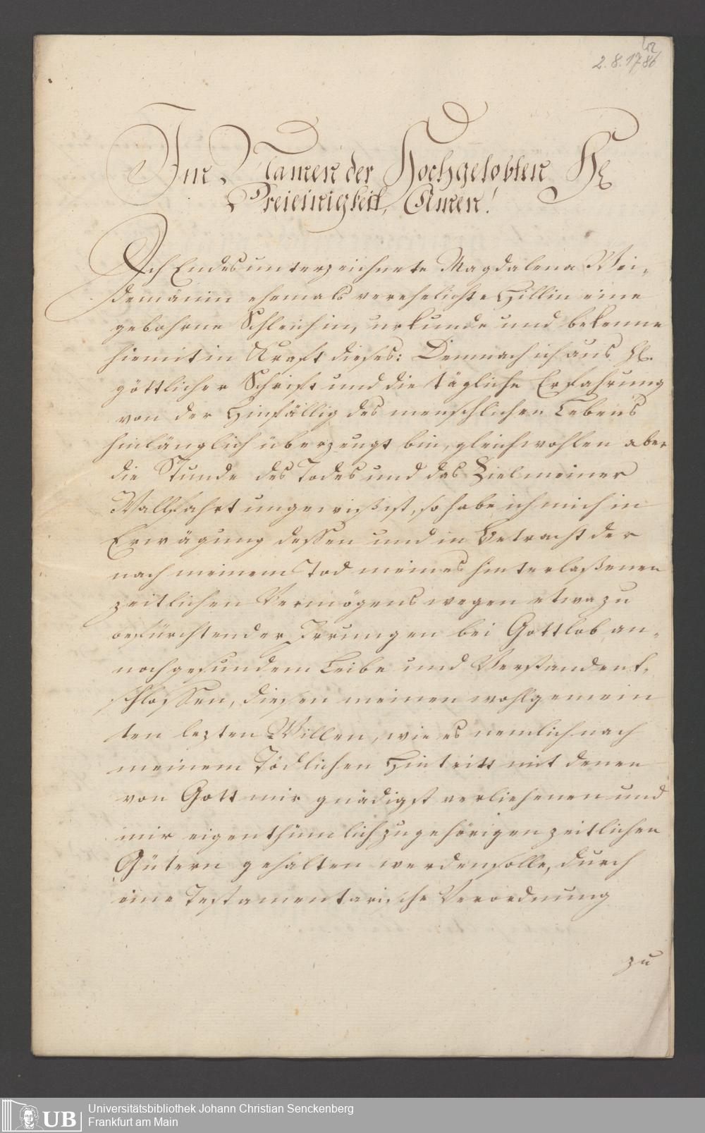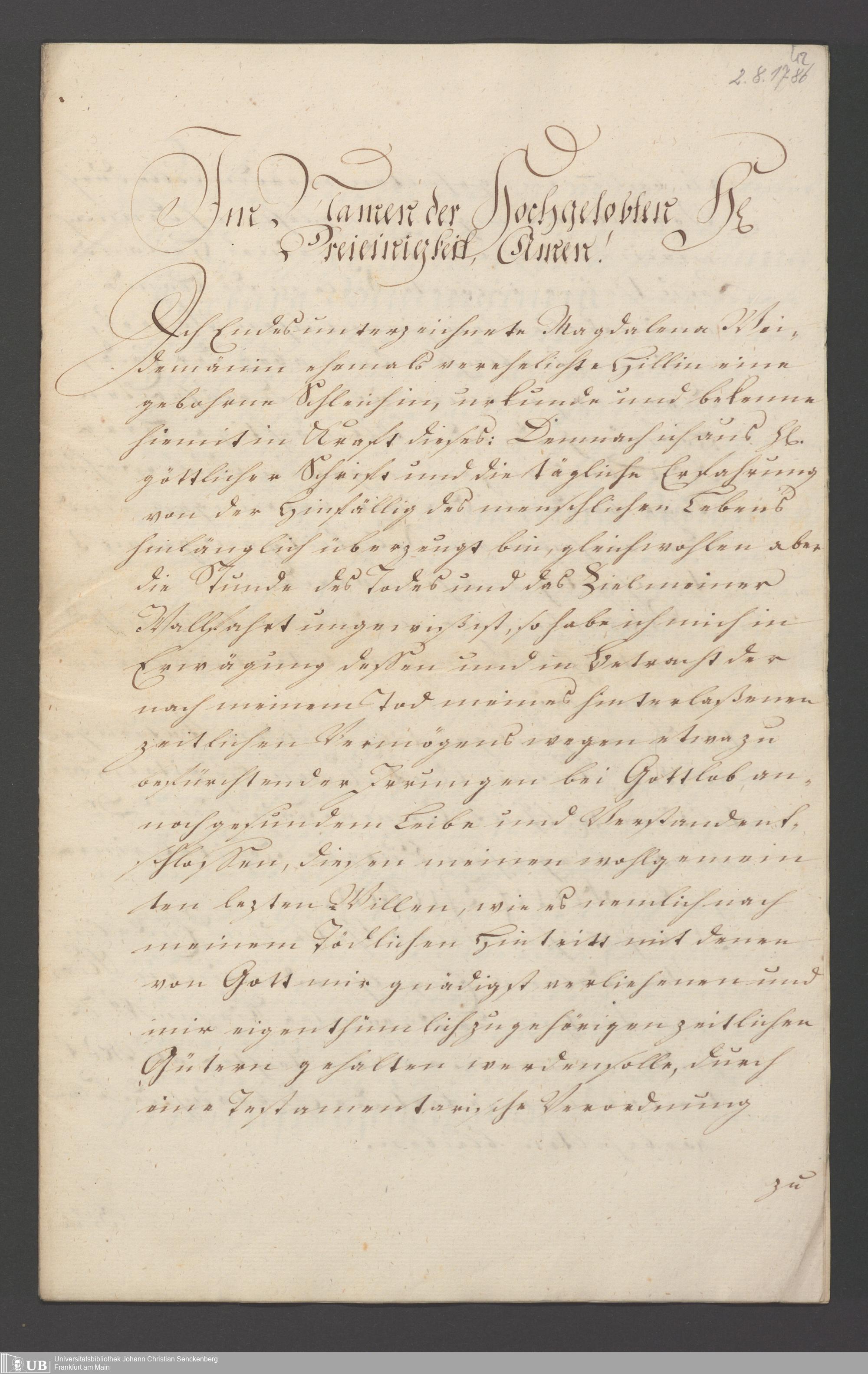 B 5 Dr. Senckenbergische Stiftung, 121 - Testament Magdalena Weidmännin