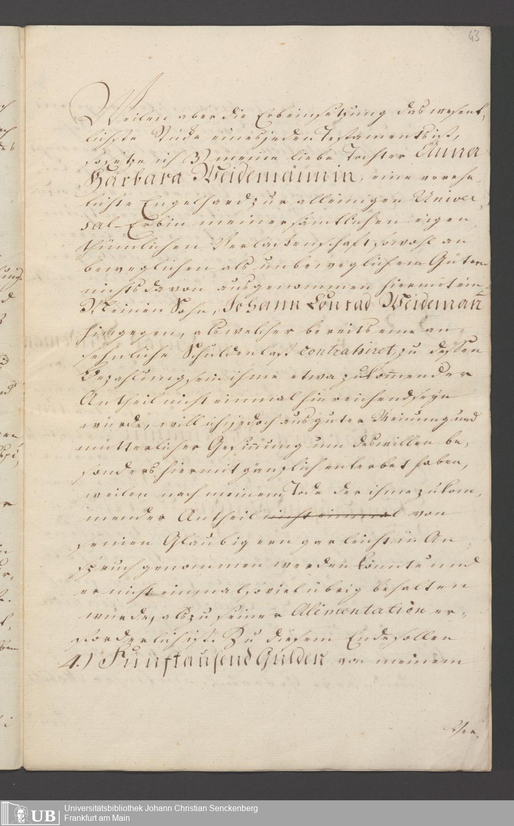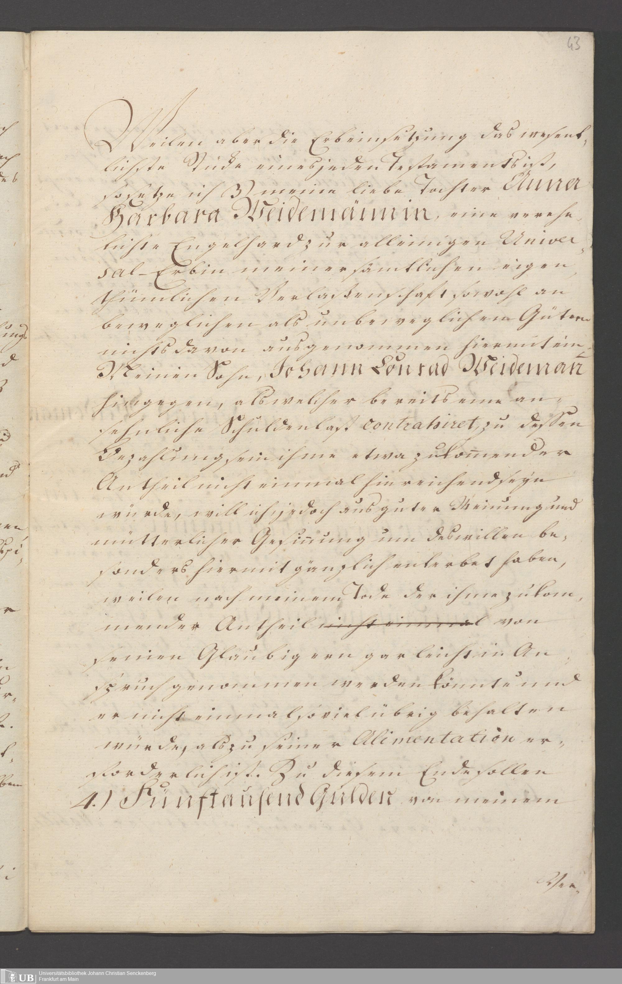 B 5 Dr. Senckenbergische Stiftung, 121 - Testament Magdalena Weidmännin