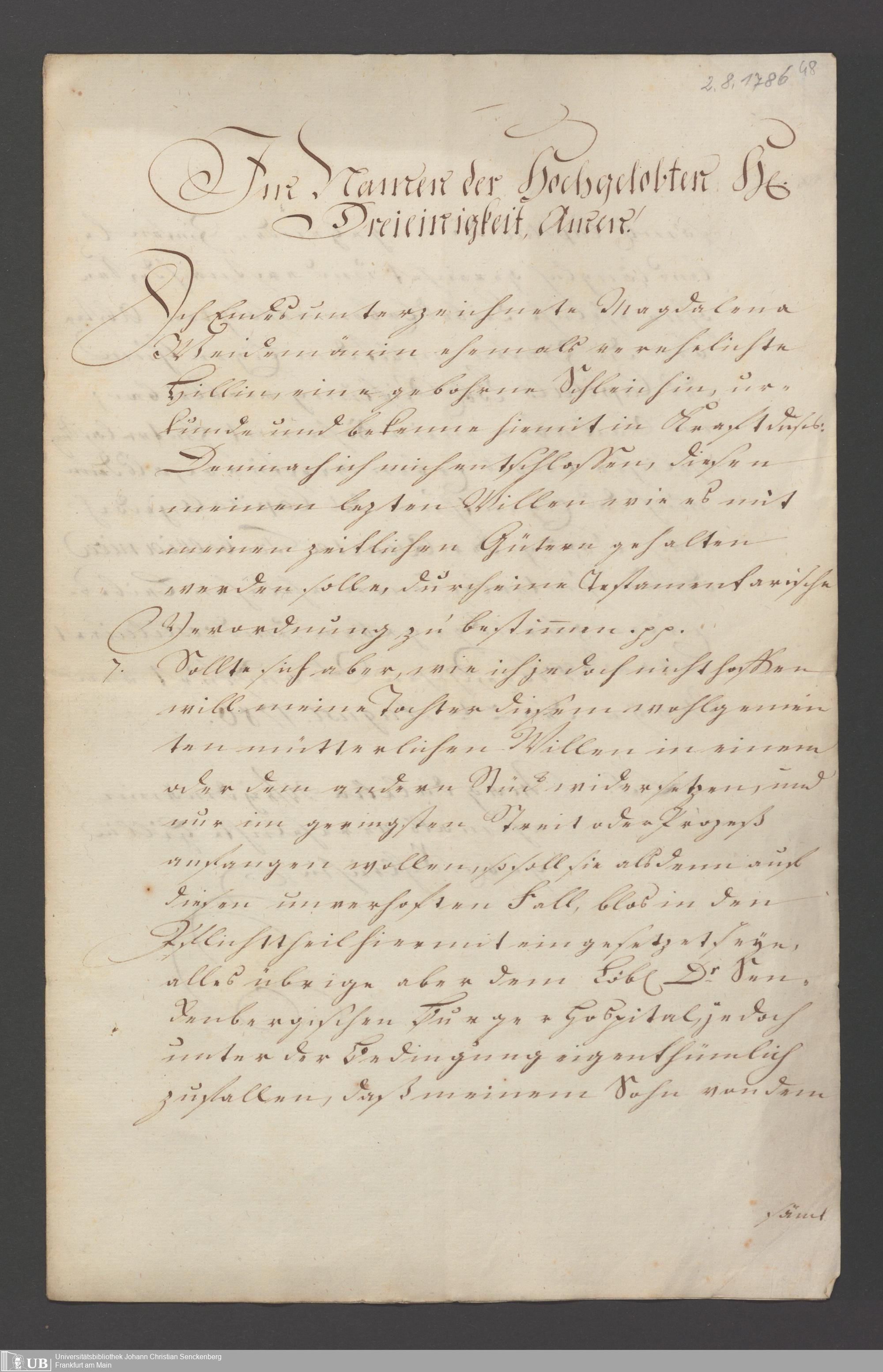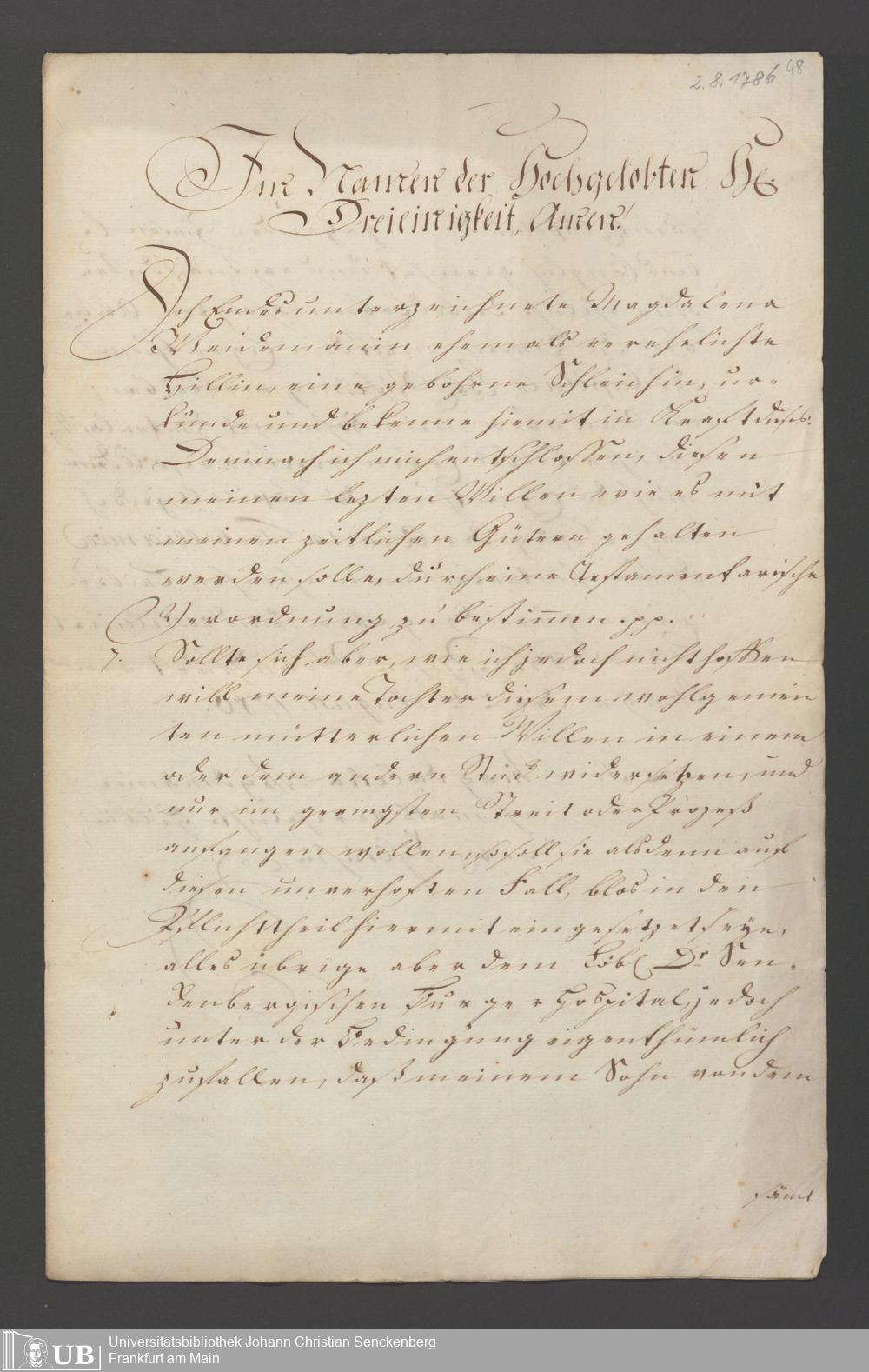 B 5 Dr. Senckenbergische Stiftung, 121 - Testament Magdalena Weidmännin