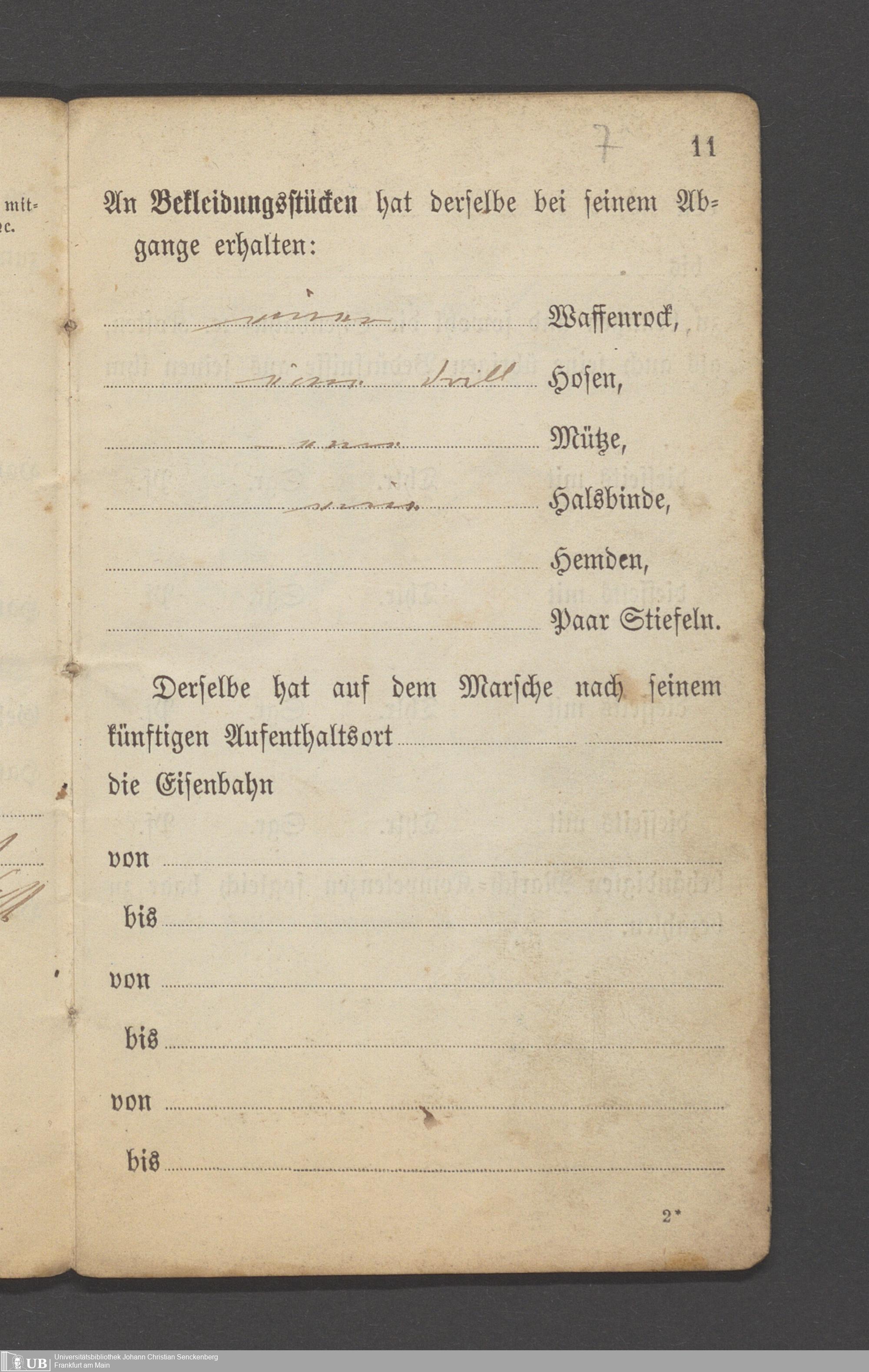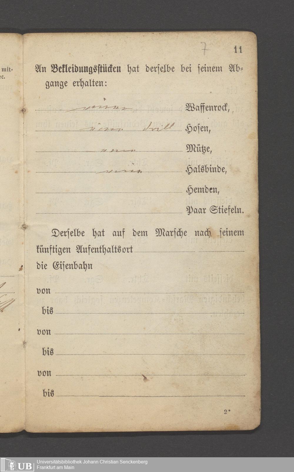 B 5 Dr. Senckenbergische Stiftung, 12 - Einquartierungszettel, Militärpässe