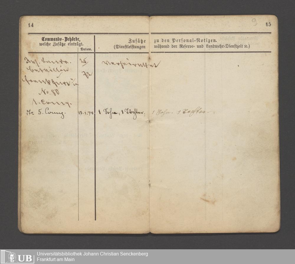 B 5 Dr. Senckenbergische Stiftung, 12 - Einquartierungszettel, Militärpässe