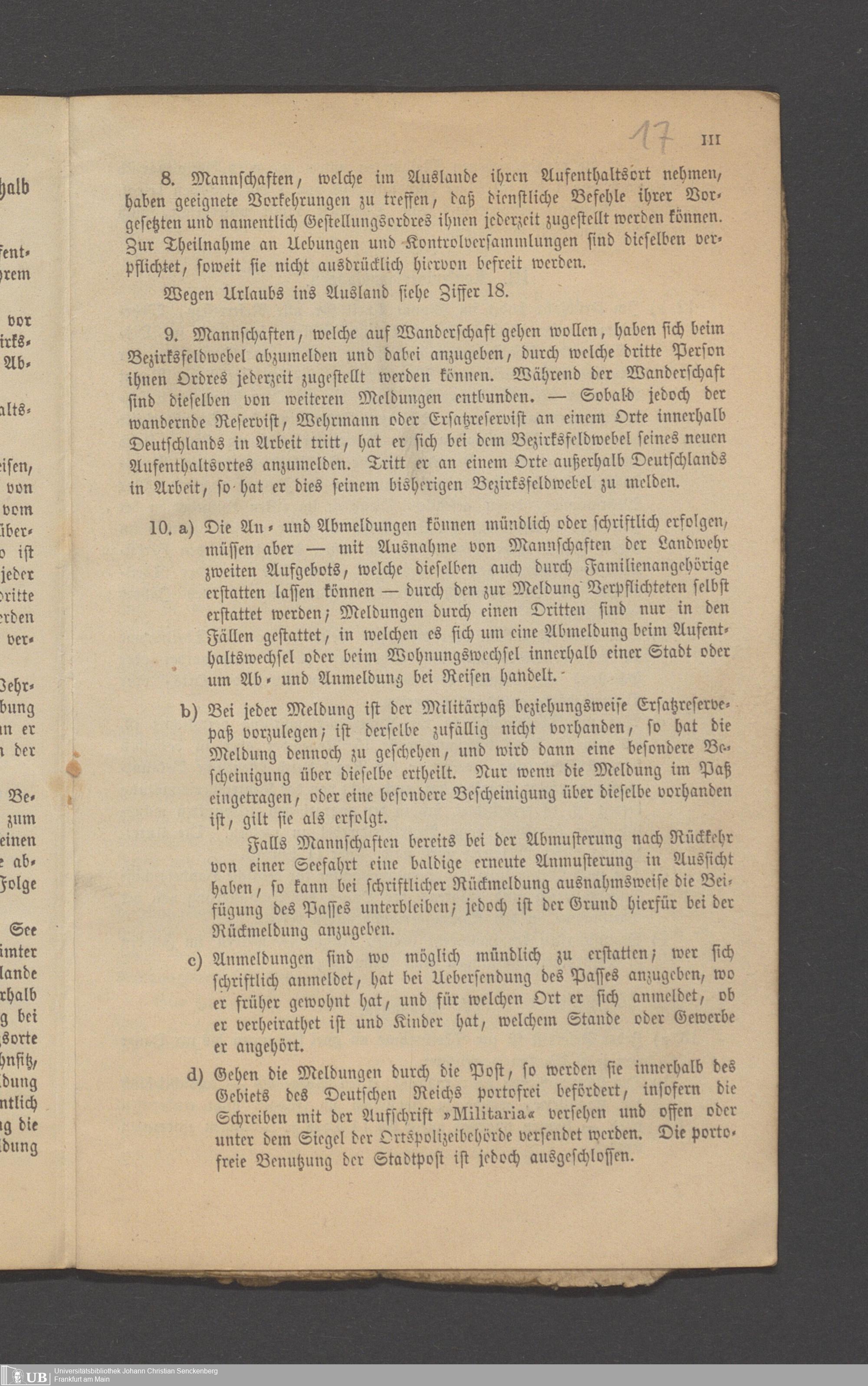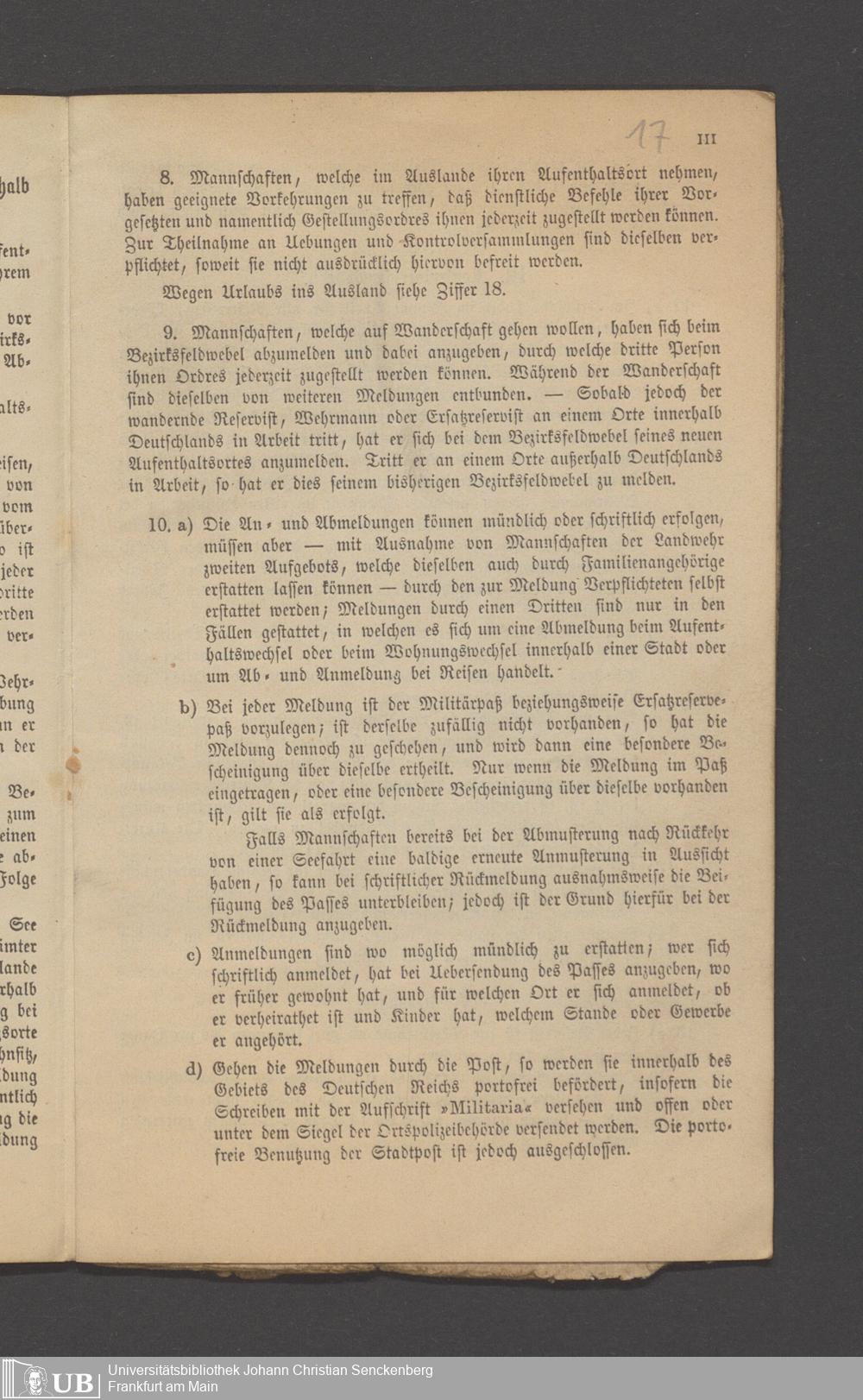 B 5 Dr. Senckenbergische Stiftung, 12 - Einquartierungszettel, Militärpässe