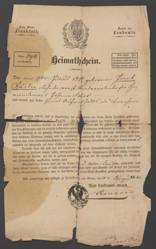 B 5 Dr. Senckenbergische Stiftung, 12 - Einquartierungszettel, Militärpässe