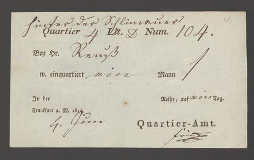 B 5 Dr. Senckenbergische Stiftung, 12 - Einquartierungszettel, Militärpässe