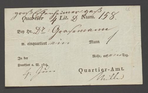 B 5 Dr. Senckenbergische Stiftung, 12 - Einquartierungszettel, Militärpässe