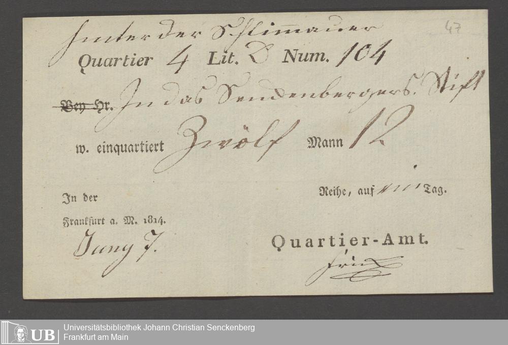 B 5 Dr. Senckenbergische Stiftung, 12 - Einquartierungszettel, Militärpässe