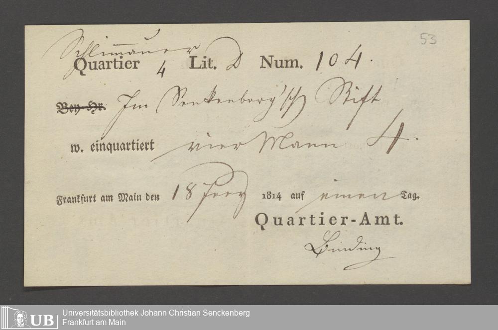 B 5 Dr. Senckenbergische Stiftung, 12 - Einquartierungszettel, Militärpässe