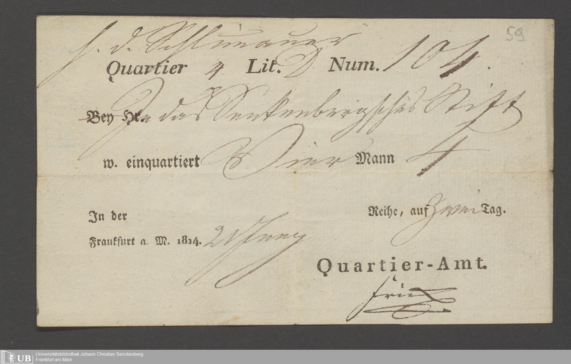 B 5 Dr. Senckenbergische Stiftung, 12 - Einquartierungszettel, Militärpässe