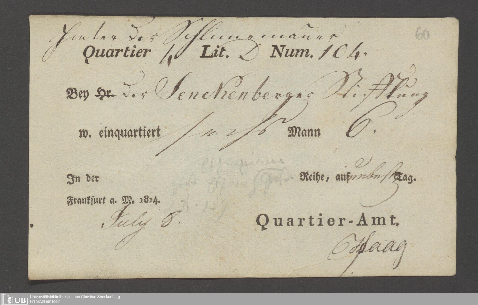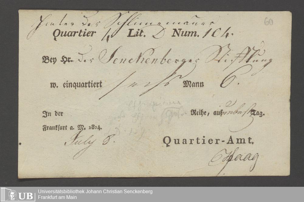 B 5 Dr. Senckenbergische Stiftung, 12 - Einquartierungszettel, Militärpässe