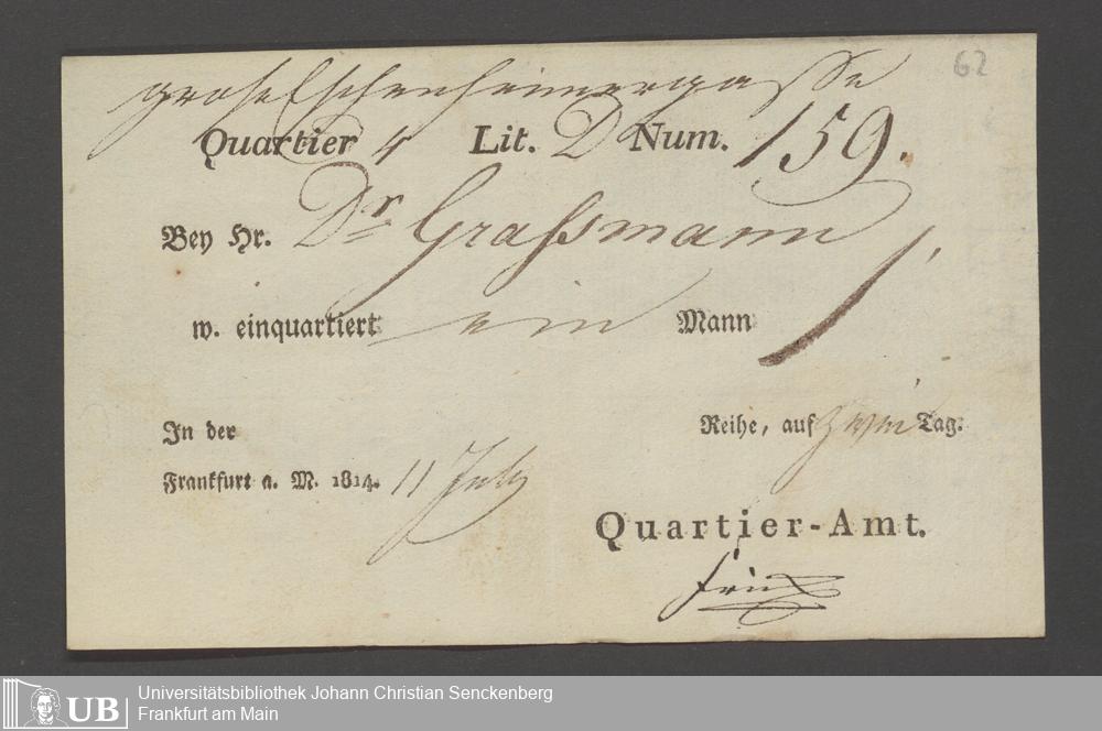 B 5 Dr. Senckenbergische Stiftung, 12 - Einquartierungszettel, Militärpässe
