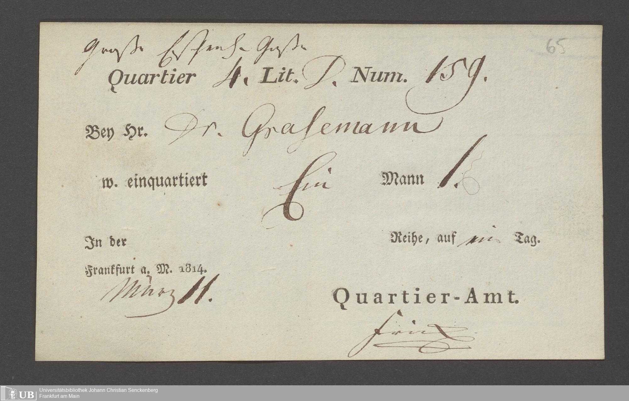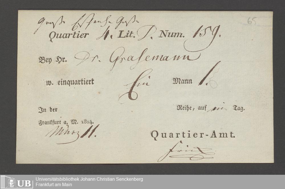 B 5 Dr. Senckenbergische Stiftung, 12 - Einquartierungszettel, Militärpässe