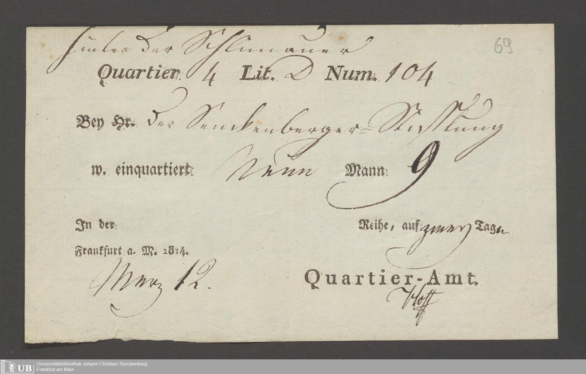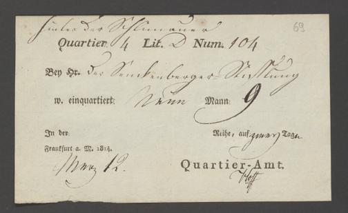 B 5 Dr. Senckenbergische Stiftung, 12 - Einquartierungszettel, Militärpässe