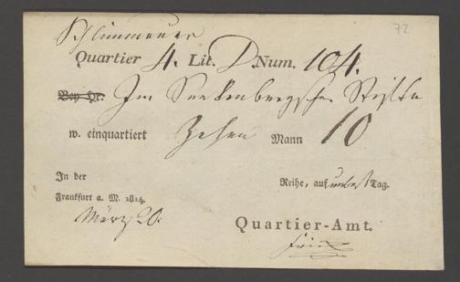 B 5 Dr. Senckenbergische Stiftung, 12 - Einquartierungszettel, Militärpässe