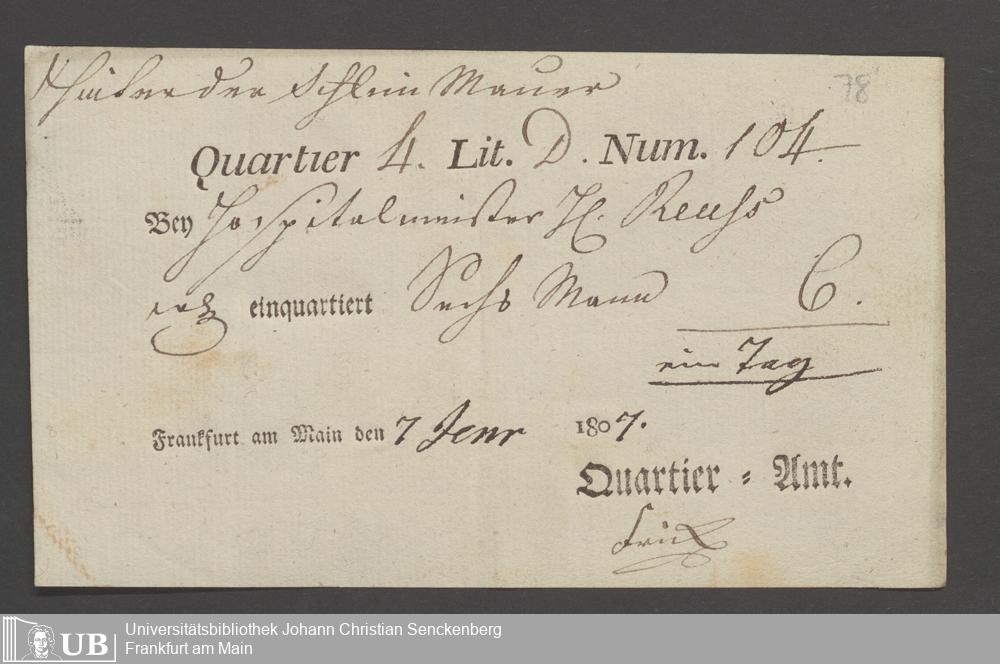 B 5 Dr. Senckenbergische Stiftung, 12 - Einquartierungszettel, Militärpässe