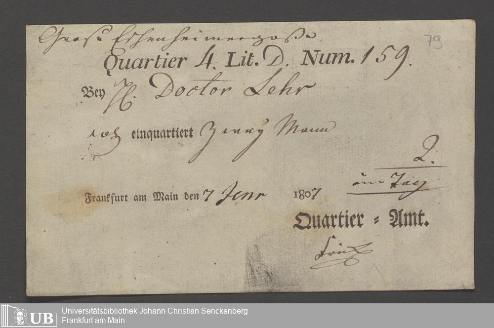 B 5 Dr. Senckenbergische Stiftung, 12 - Einquartierungszettel, Militärpässe