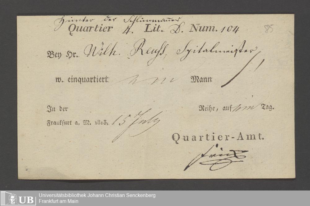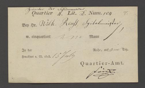 B 5 Dr. Senckenbergische Stiftung, 12 - Einquartierungszettel, Militärpässe