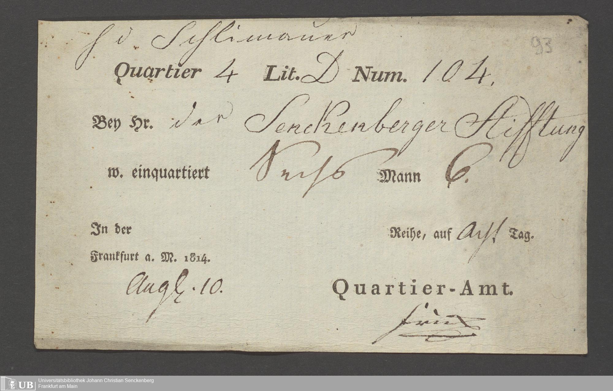 B 5 Dr. Senckenbergische Stiftung, 12 - Einquartierungszettel, Militärpässe