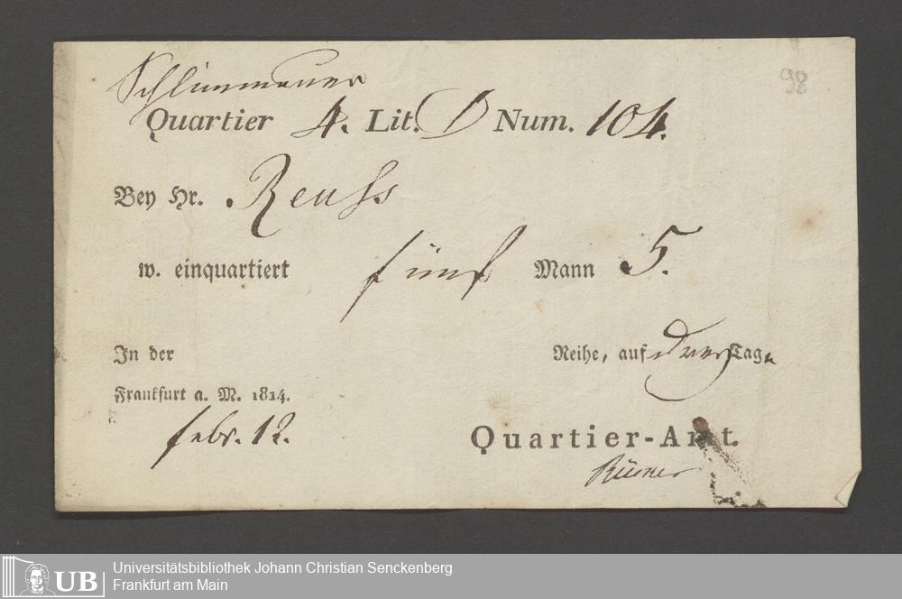 B 5 Dr. Senckenbergische Stiftung, 12 - Einquartierungszettel, Militärpässe
