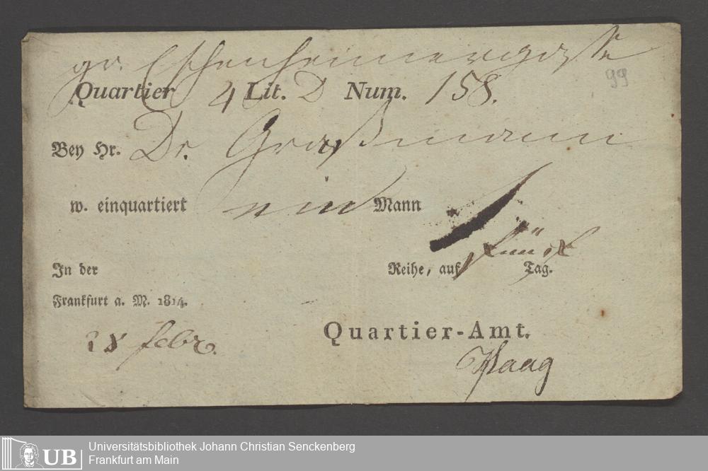 B 5 Dr. Senckenbergische Stiftung, 12 - Einquartierungszettel, Militärpässe