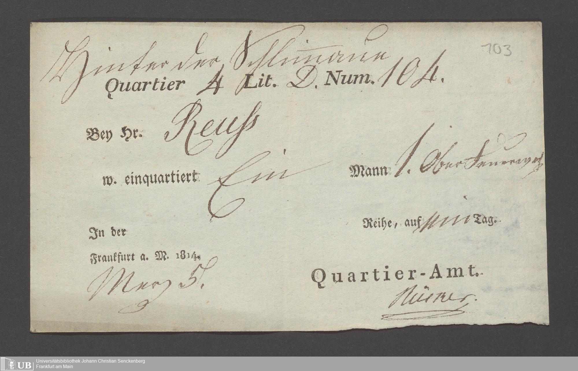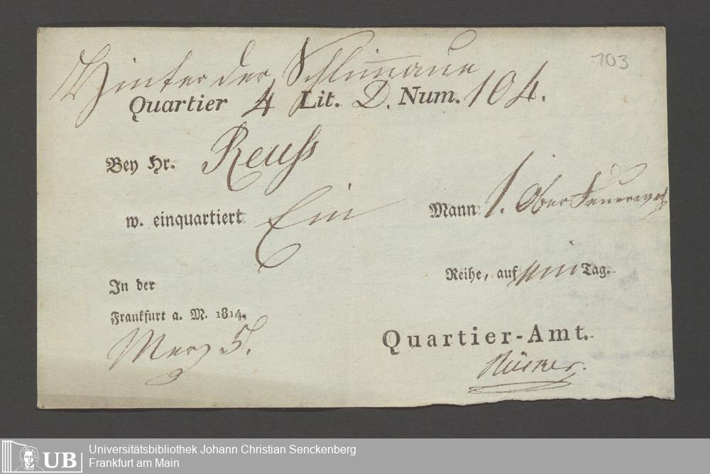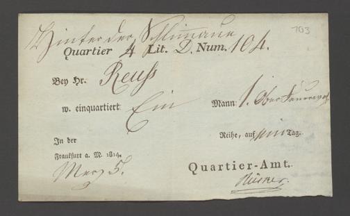 B 5 Dr. Senckenbergische Stiftung, 12 - Einquartierungszettel, Militärpässe