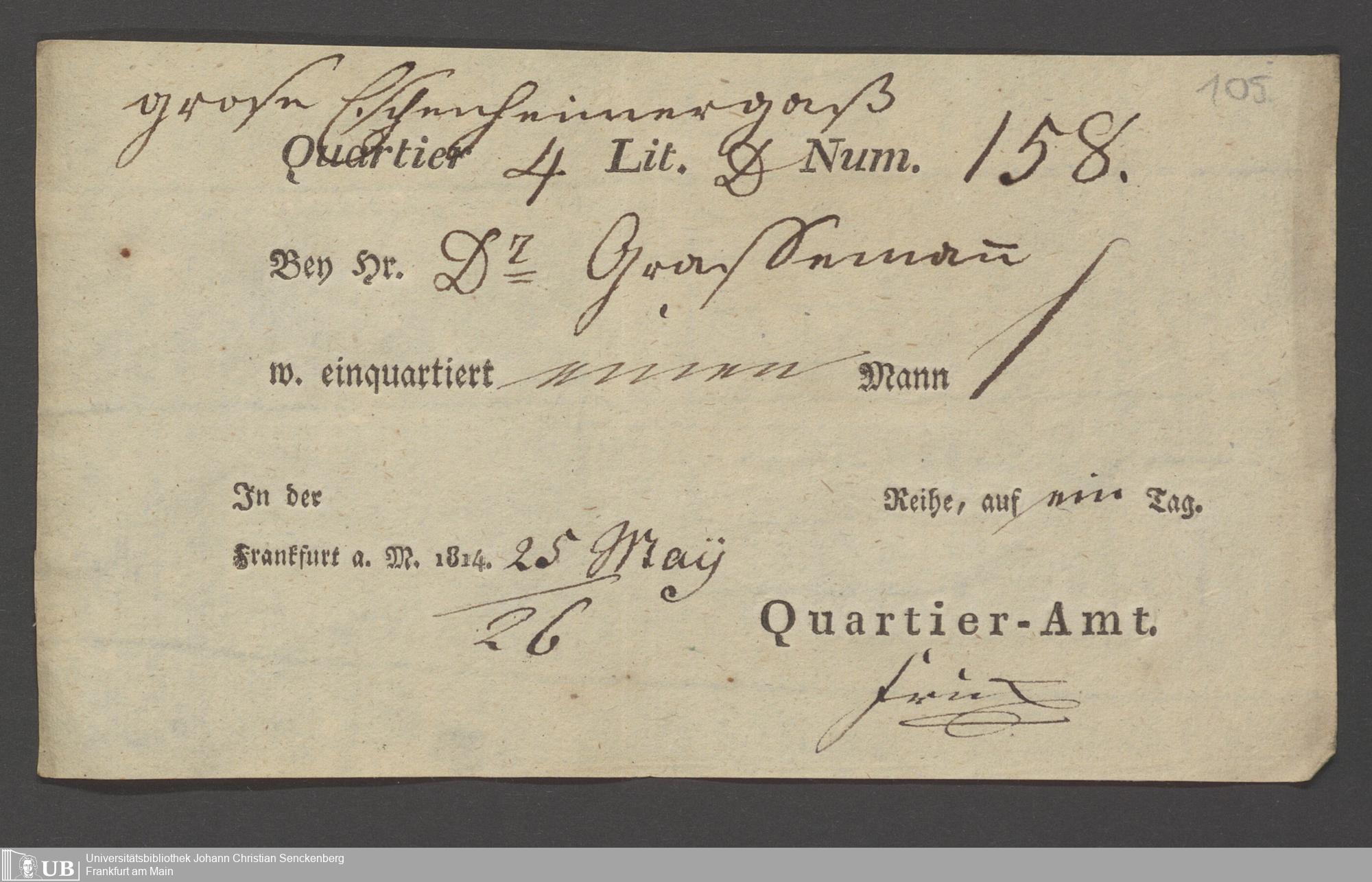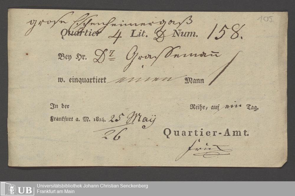 B 5 Dr. Senckenbergische Stiftung, 12 - Einquartierungszettel, Militärpässe