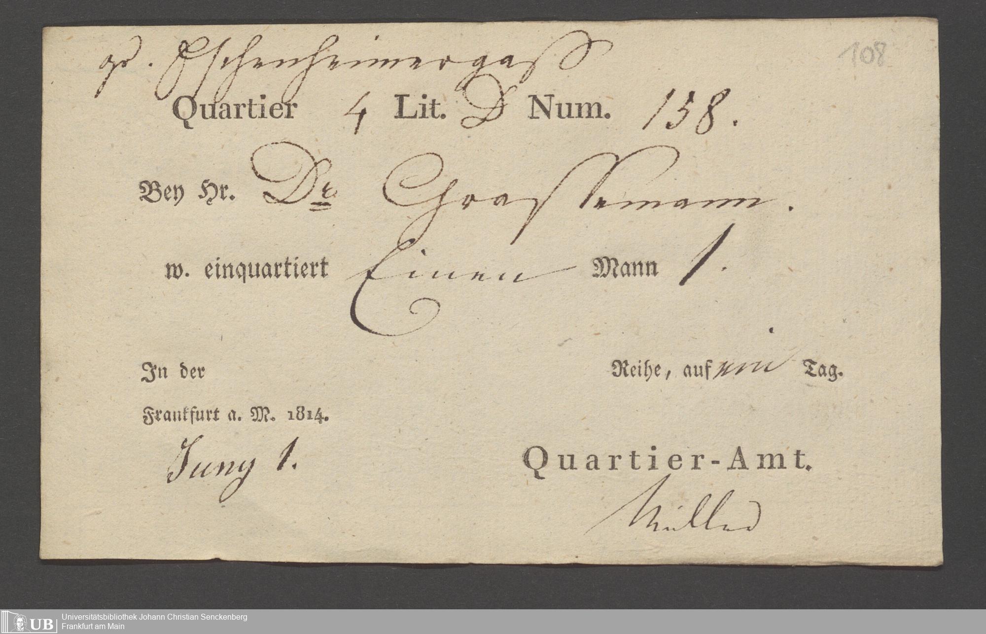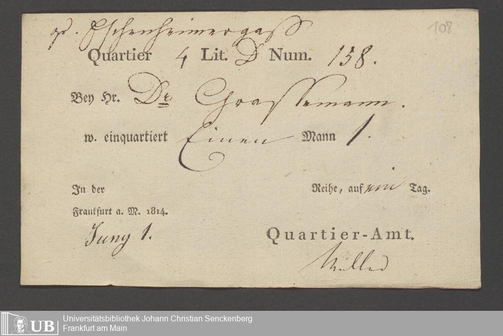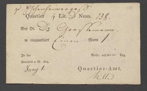 B 5 Dr. Senckenbergische Stiftung, 12 - Einquartierungszettel, Militärpässe