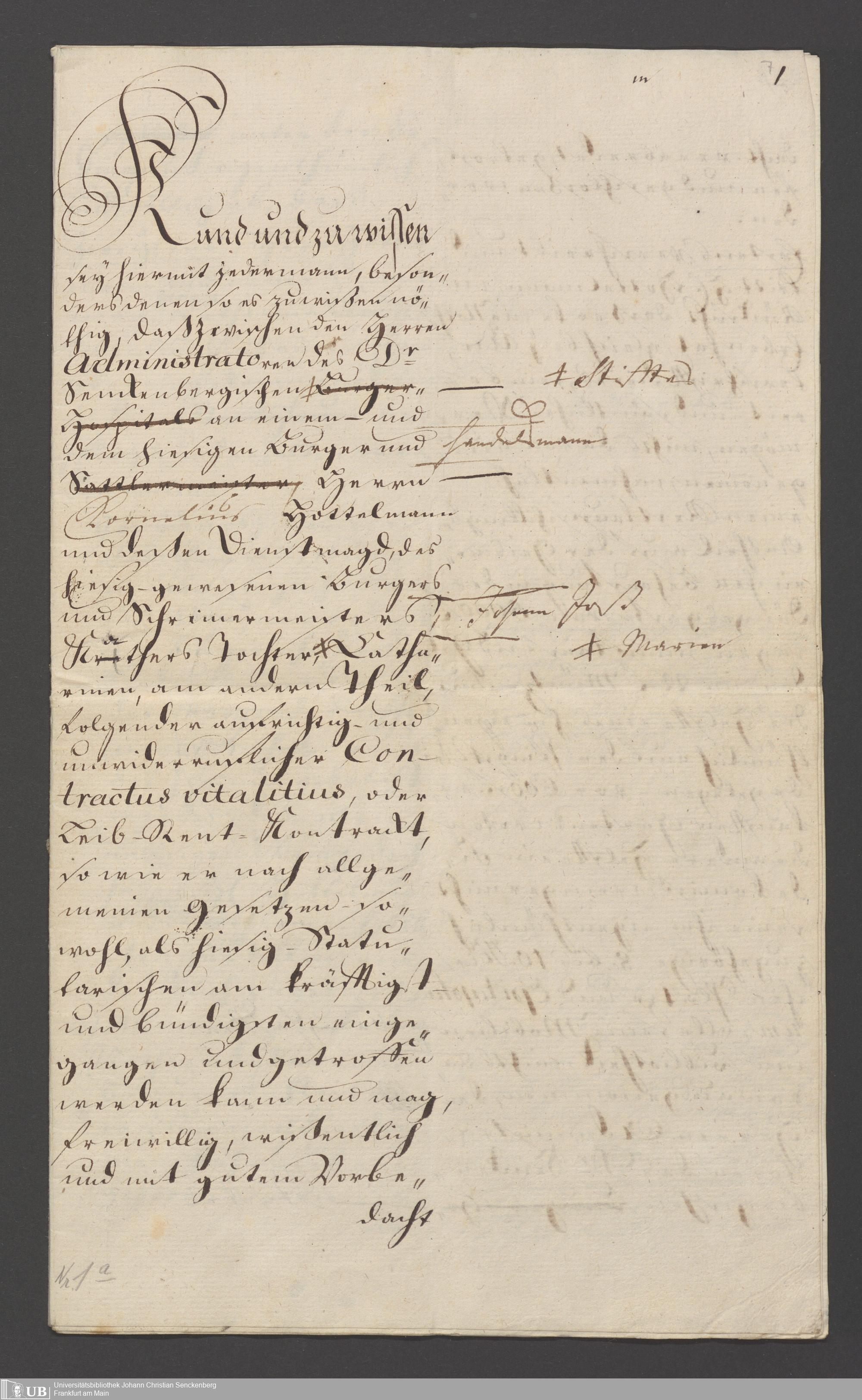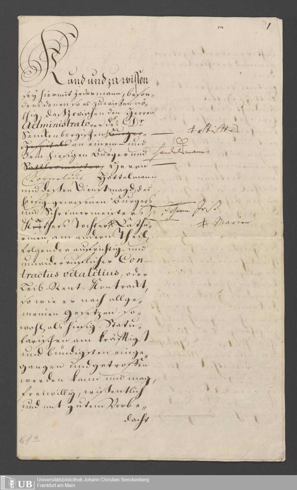 B 5 Dr. Senckenbergische Stiftung, 110 - Testament Cornelius Hottelmann