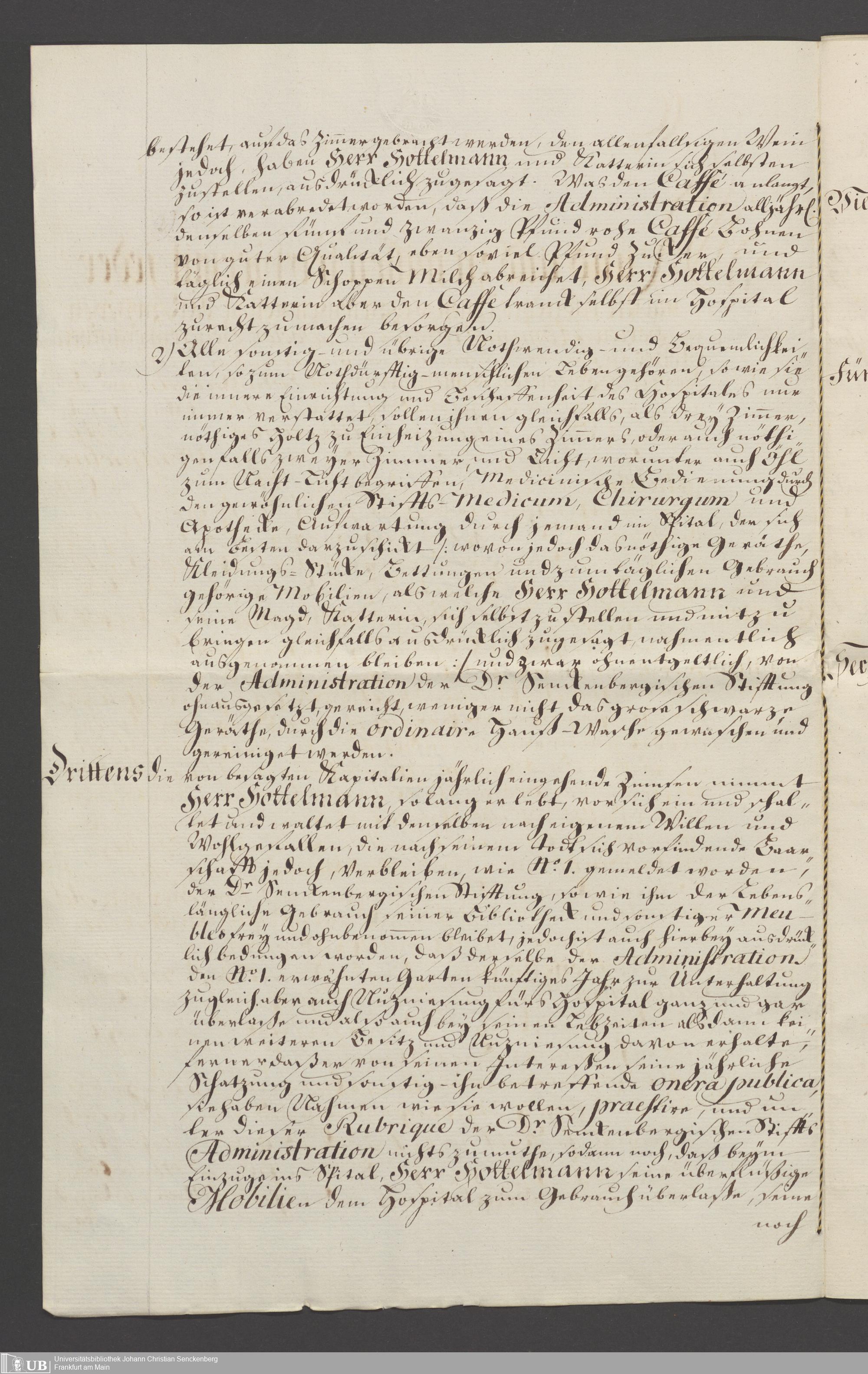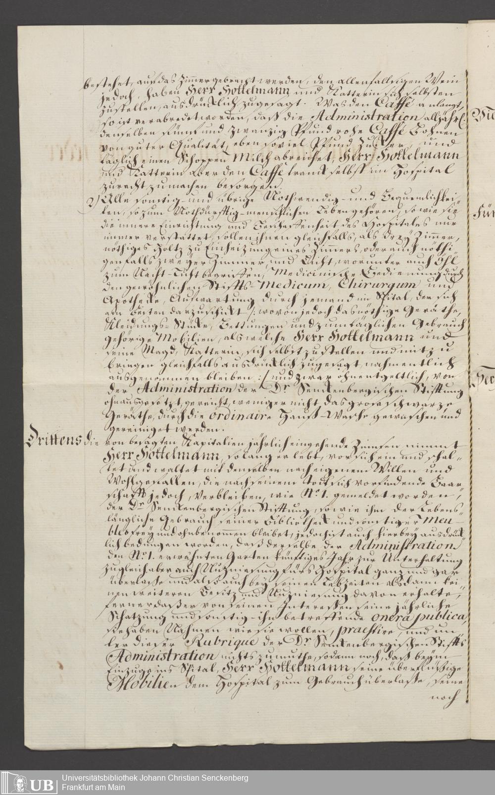 B 5 Dr. Senckenbergische Stiftung, 110 - Testament Cornelius Hottelmann