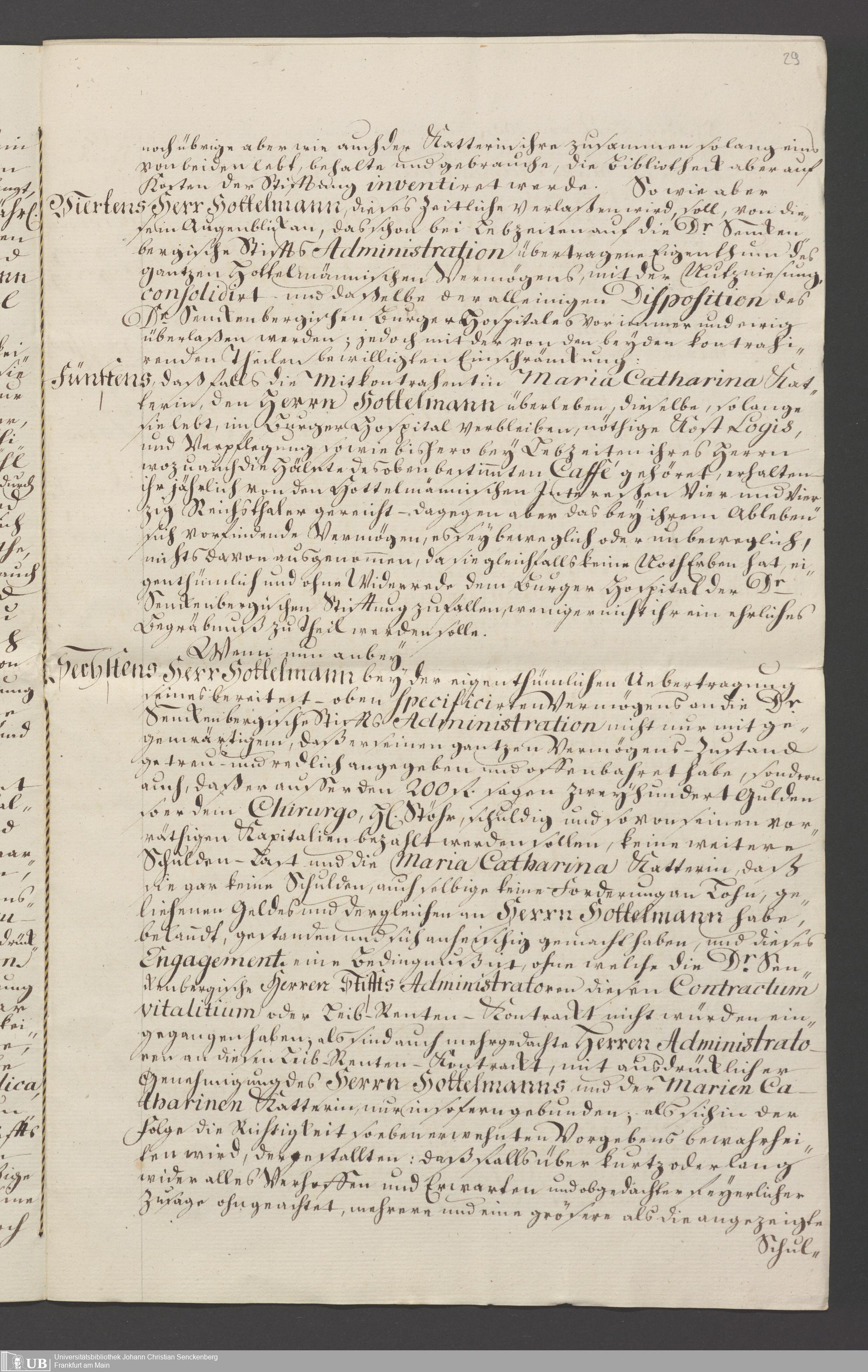 B 5 Dr. Senckenbergische Stiftung, 110 - Testament Cornelius Hottelmann