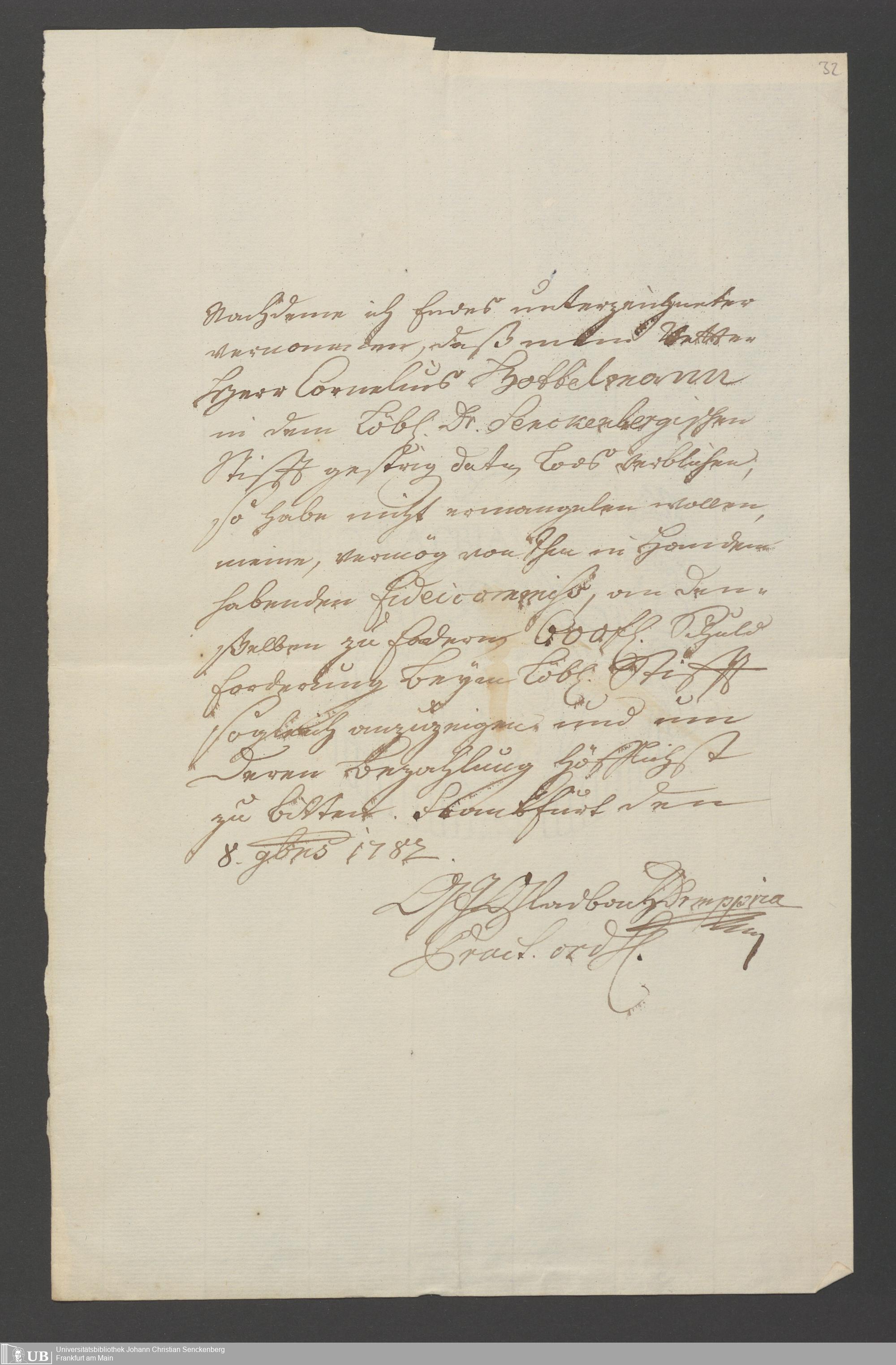 B 5 Dr. Senckenbergische Stiftung, 110 - Testament Cornelius Hottelmann