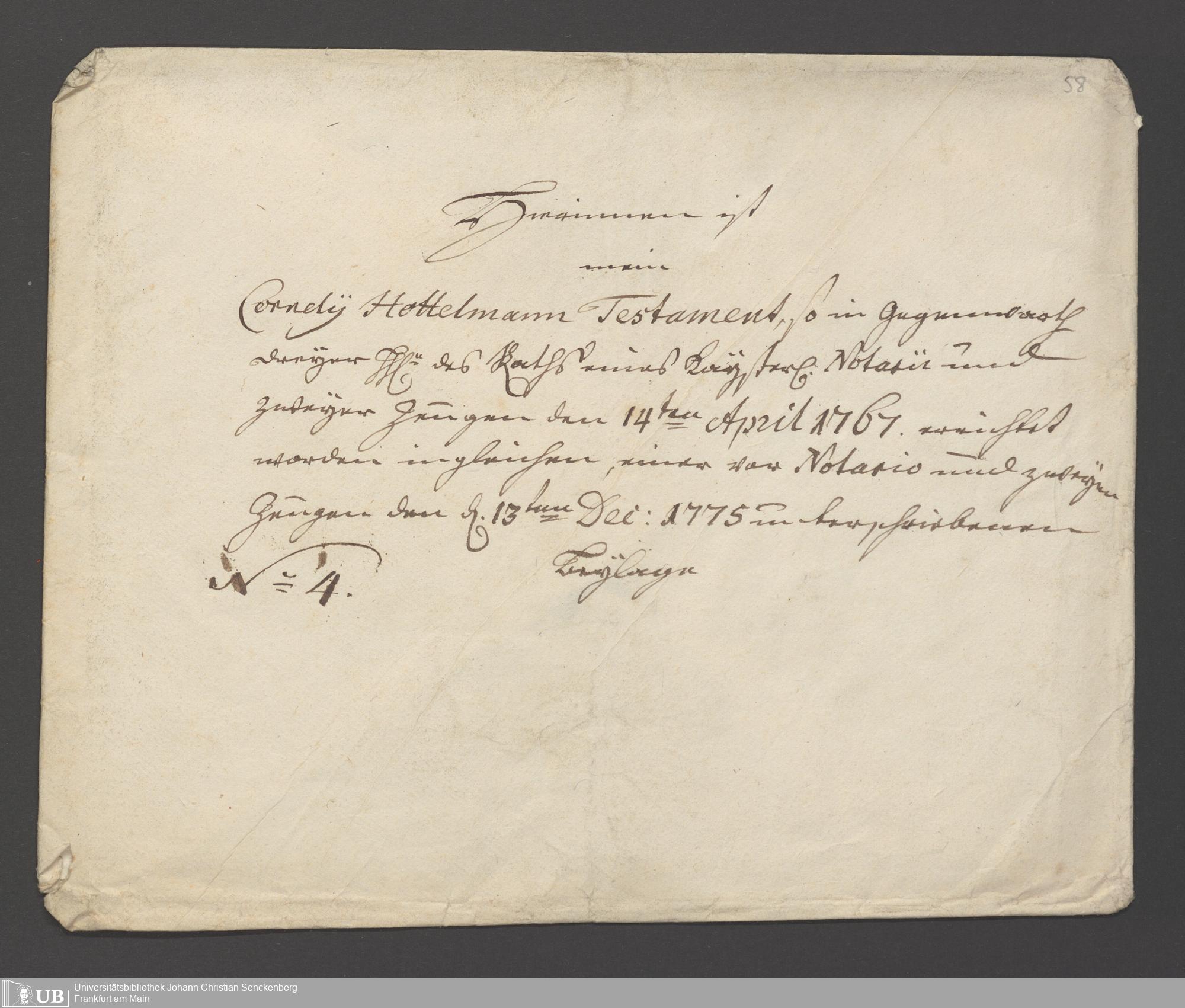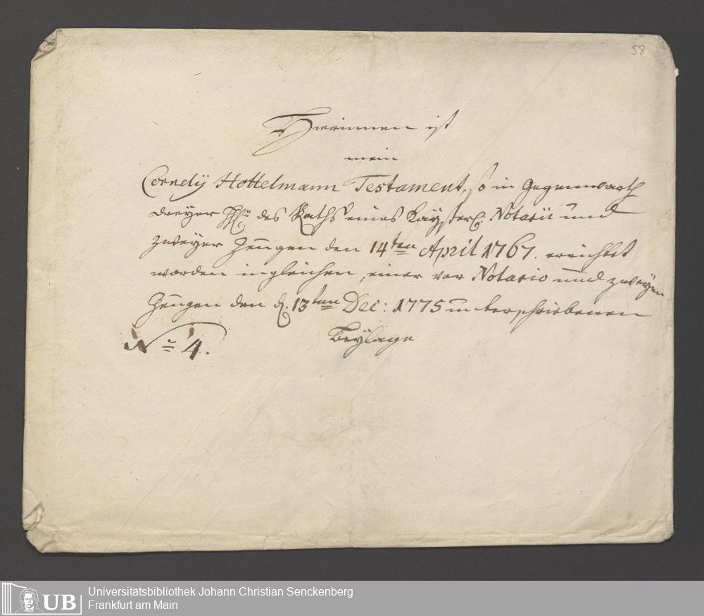 B 5 Dr. Senckenbergische Stiftung, 110 - Testament Cornelius Hottelmann