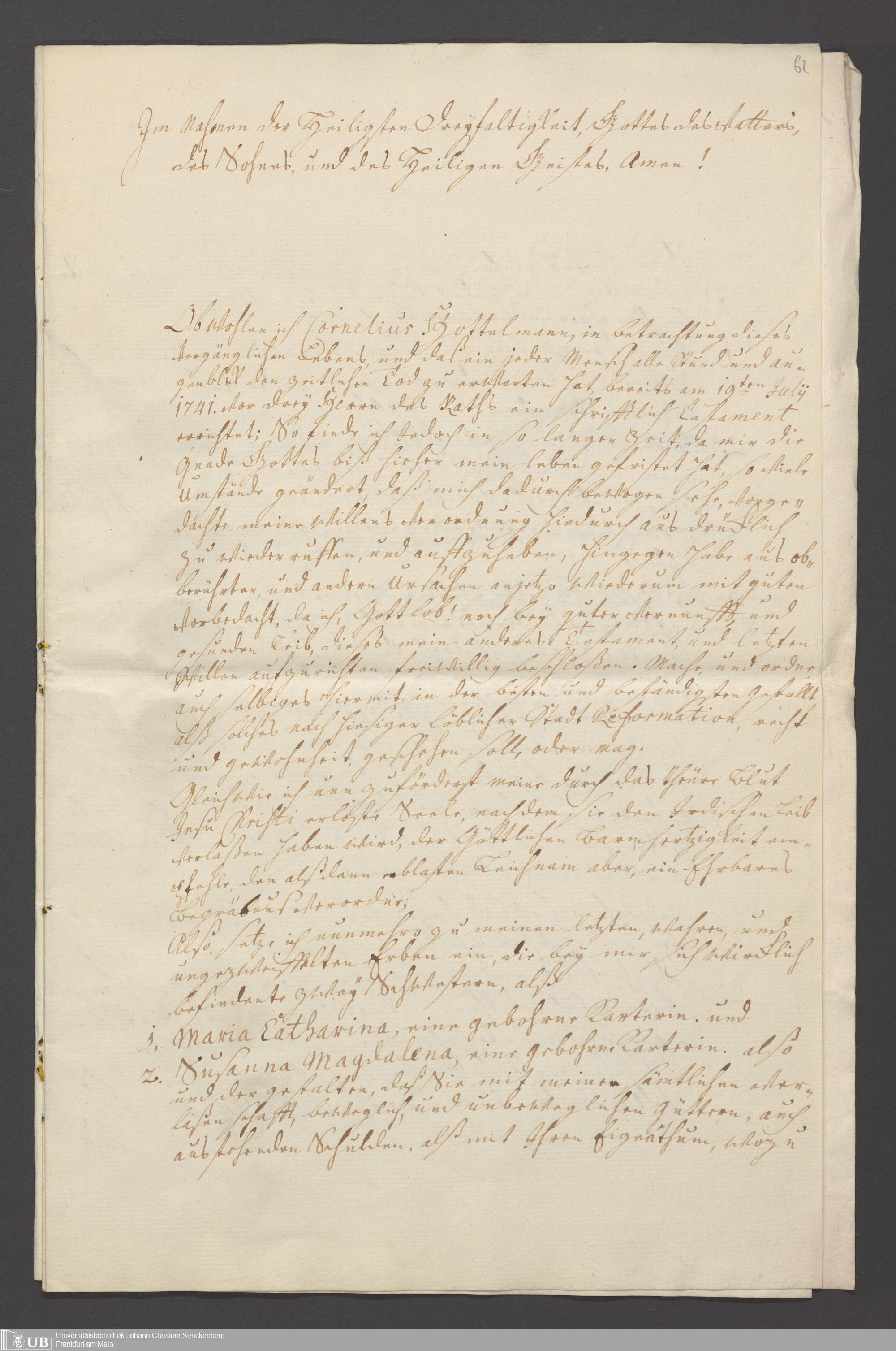 B 5 Dr. Senckenbergische Stiftung, 110 - Testament Cornelius Hottelmann