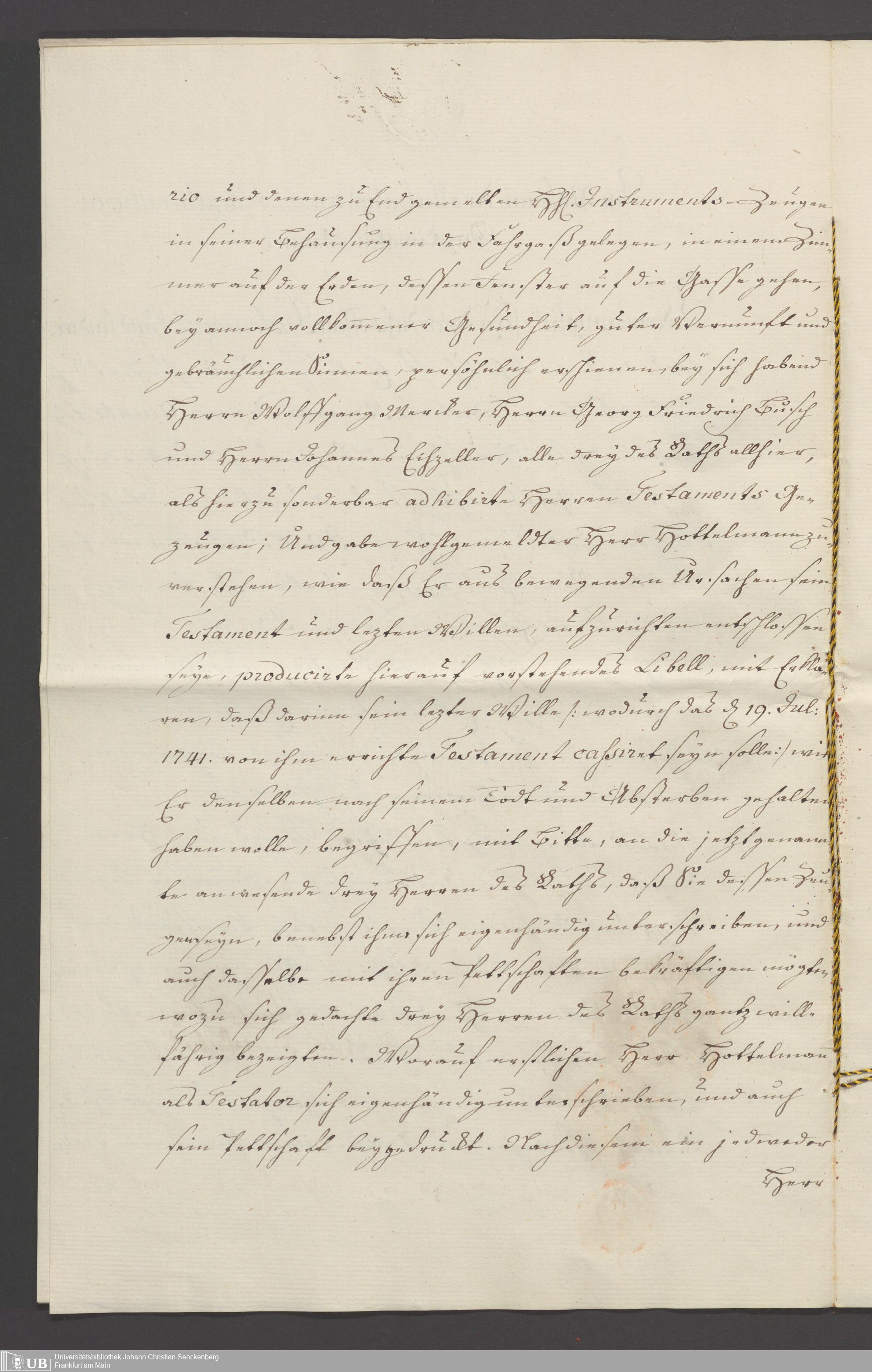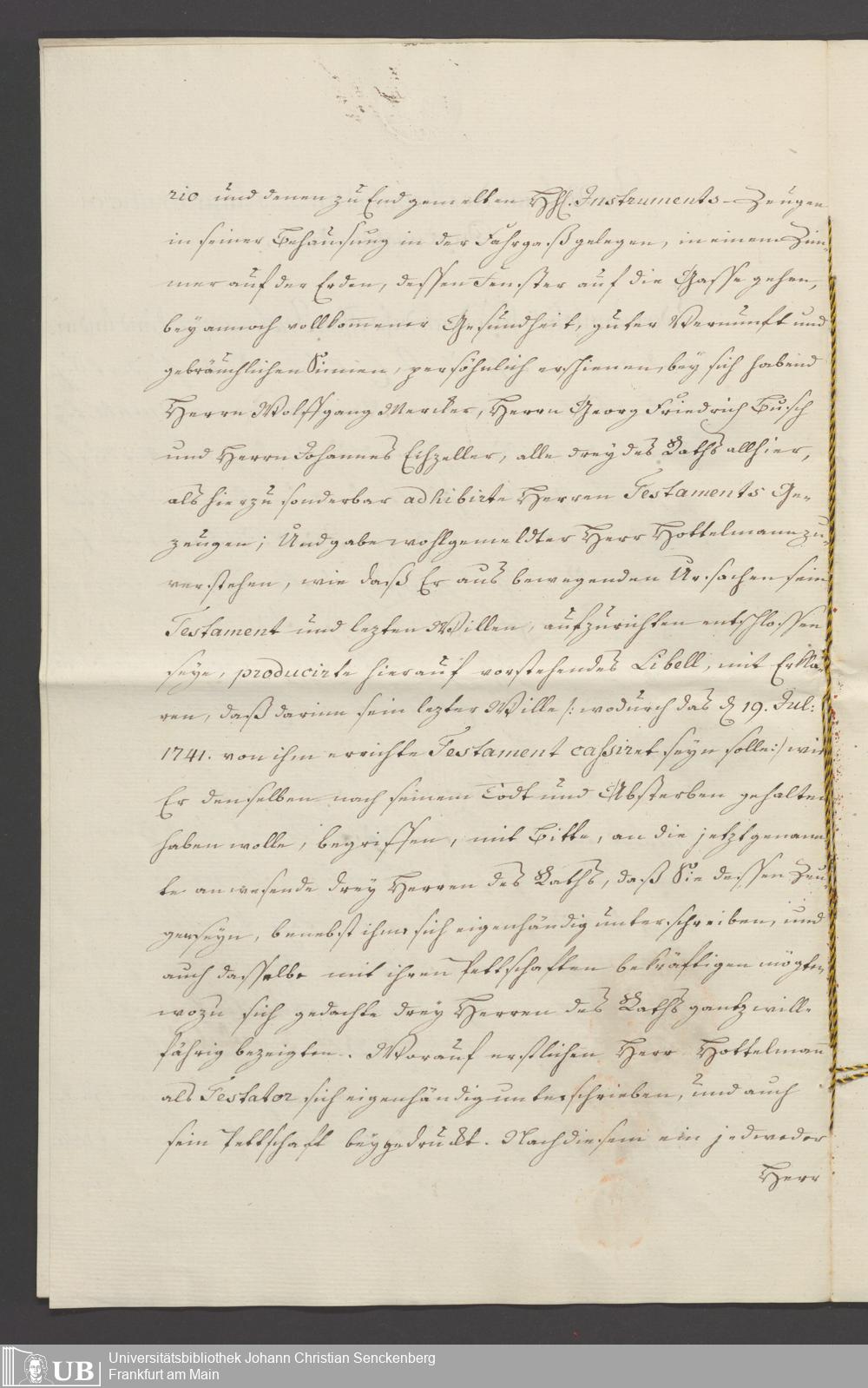 B 5 Dr. Senckenbergische Stiftung, 110 - Testament Cornelius Hottelmann