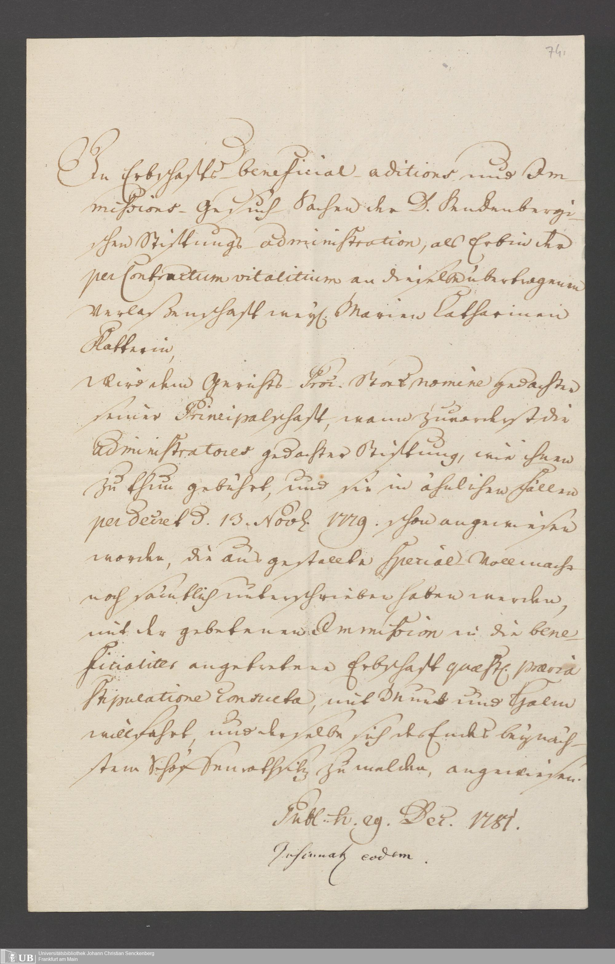 B 5 Dr. Senckenbergische Stiftung, 110 - Testament Cornelius Hottelmann