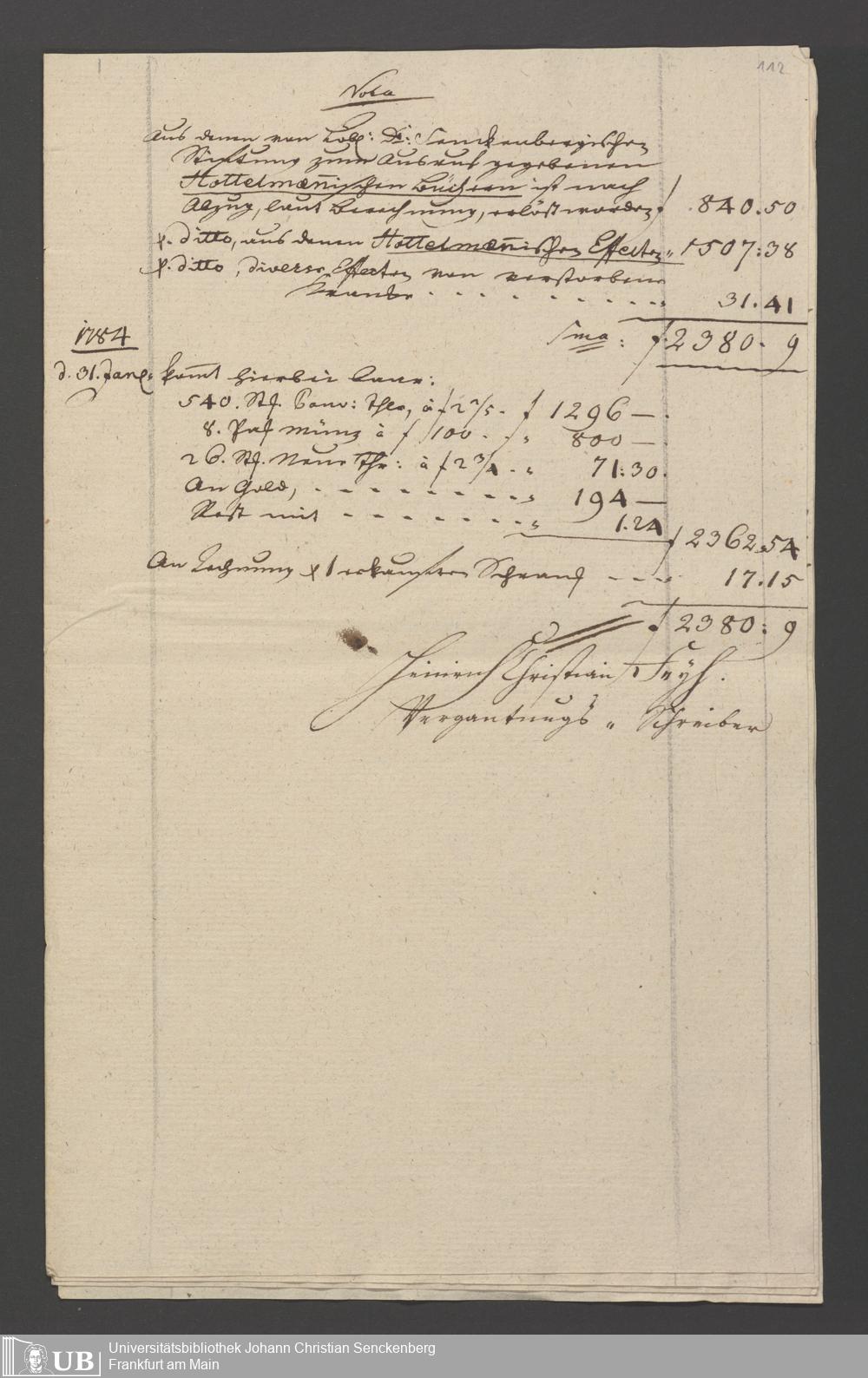 B 5 Dr. Senckenbergische Stiftung, 110 - Testament Cornelius Hottelmann
