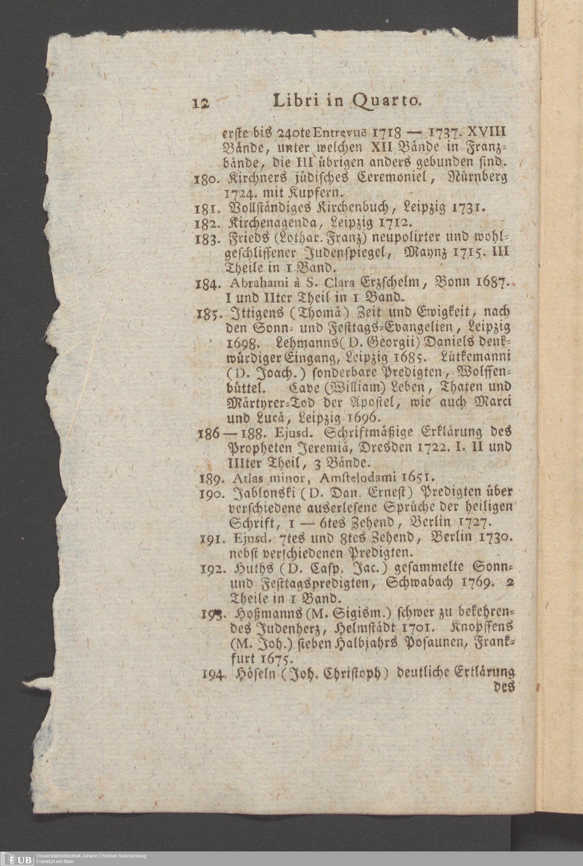 Nachlass Johann Christian Senckenberg