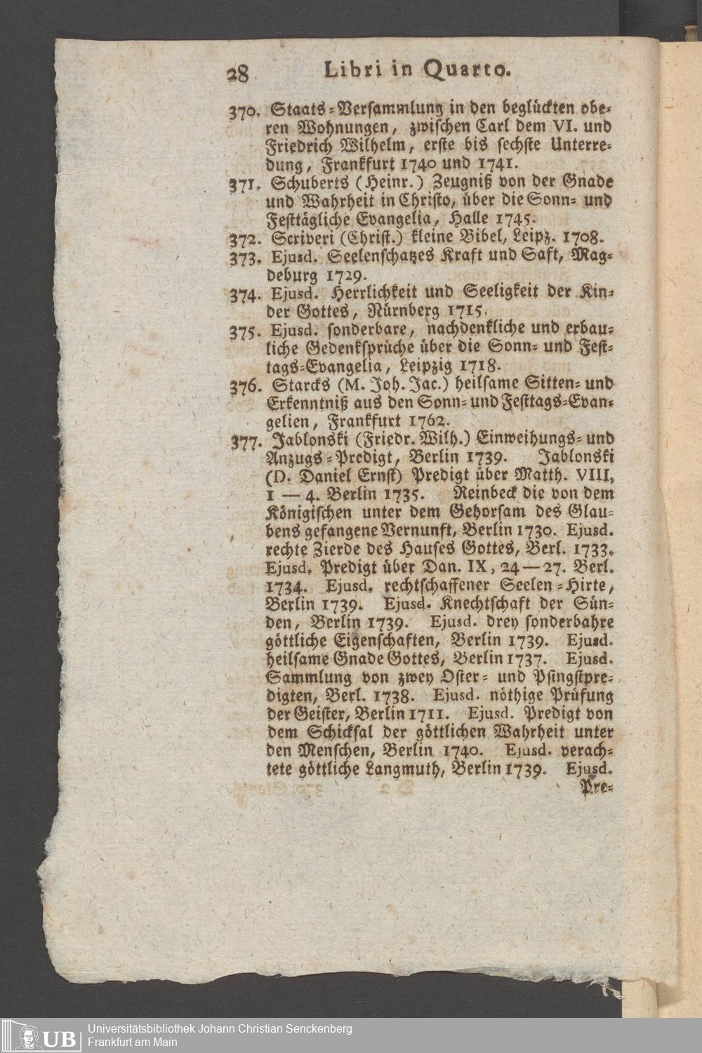 Nachlass Johann Christian Senckenberg