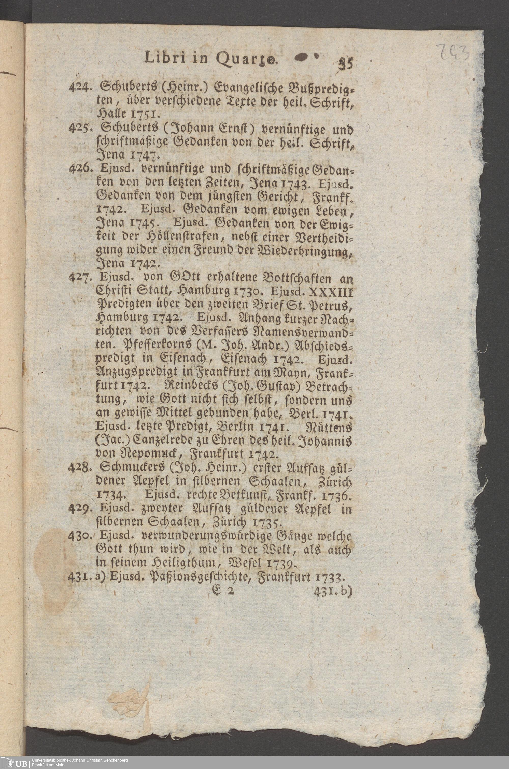 Nachlass Johann Christian Senckenberg