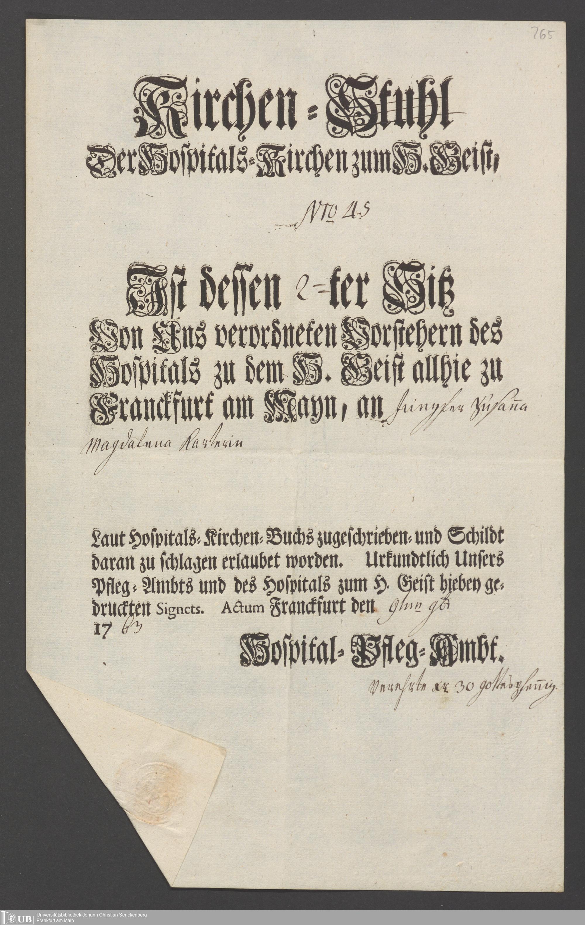 B 5 Dr. Senckenbergische Stiftung, 112 - Erbschaft Hottemann