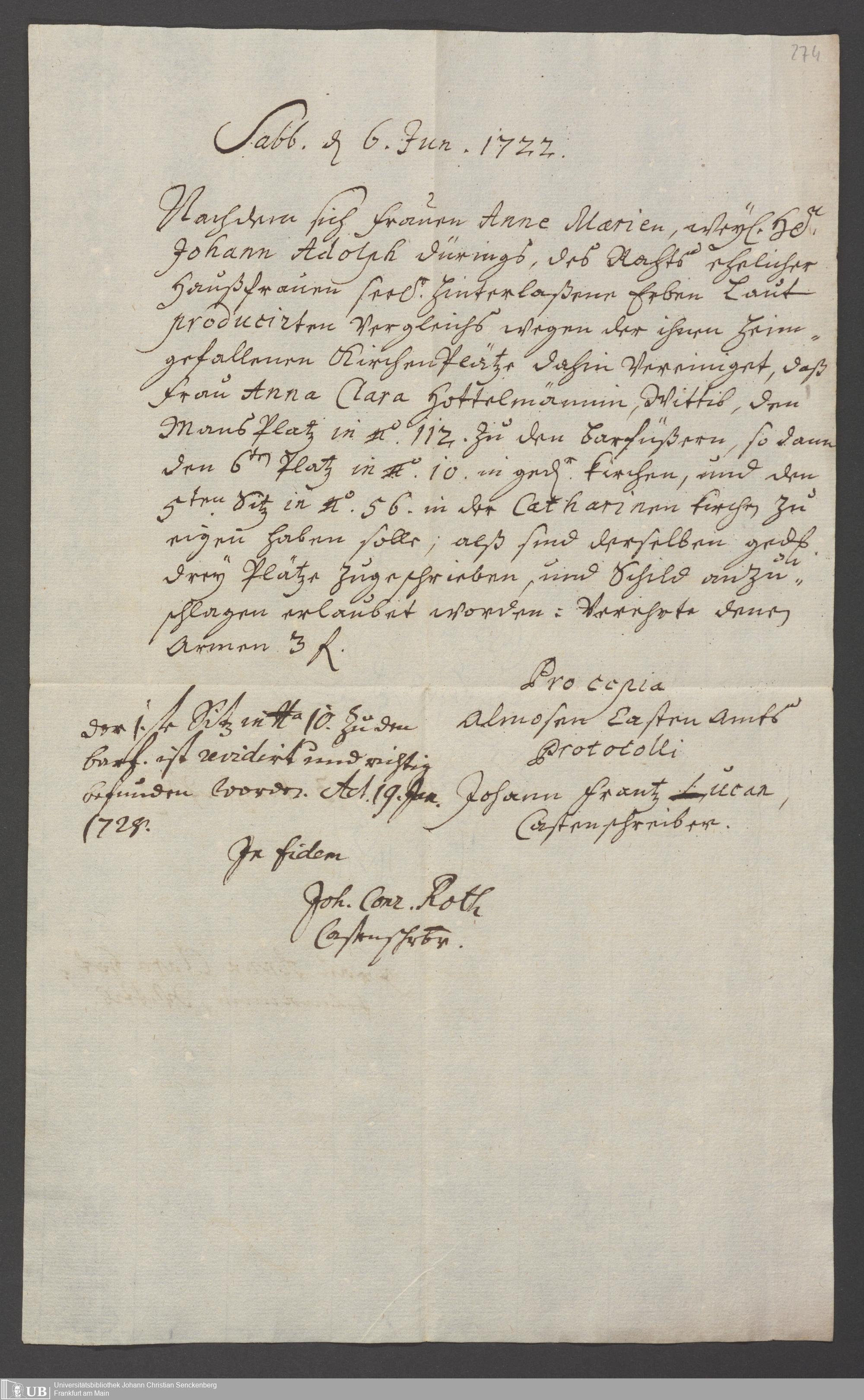 B 5 Dr. Senckenbergische Stiftung, 112 - Erbschaft Hottemann