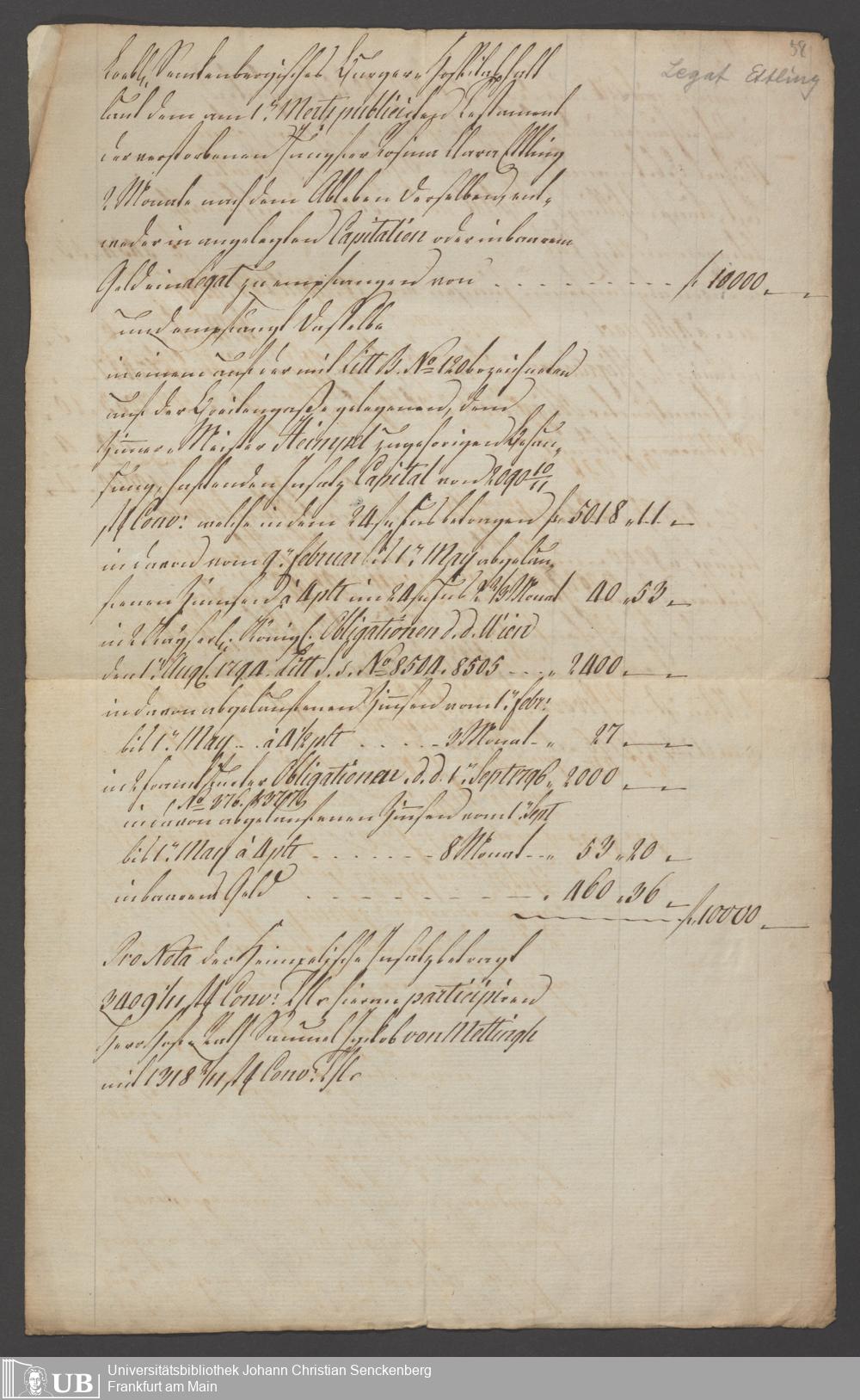 B 5 Dr. Senckenbergische Stiftung, 113 - Schenkung und Legat Ettling