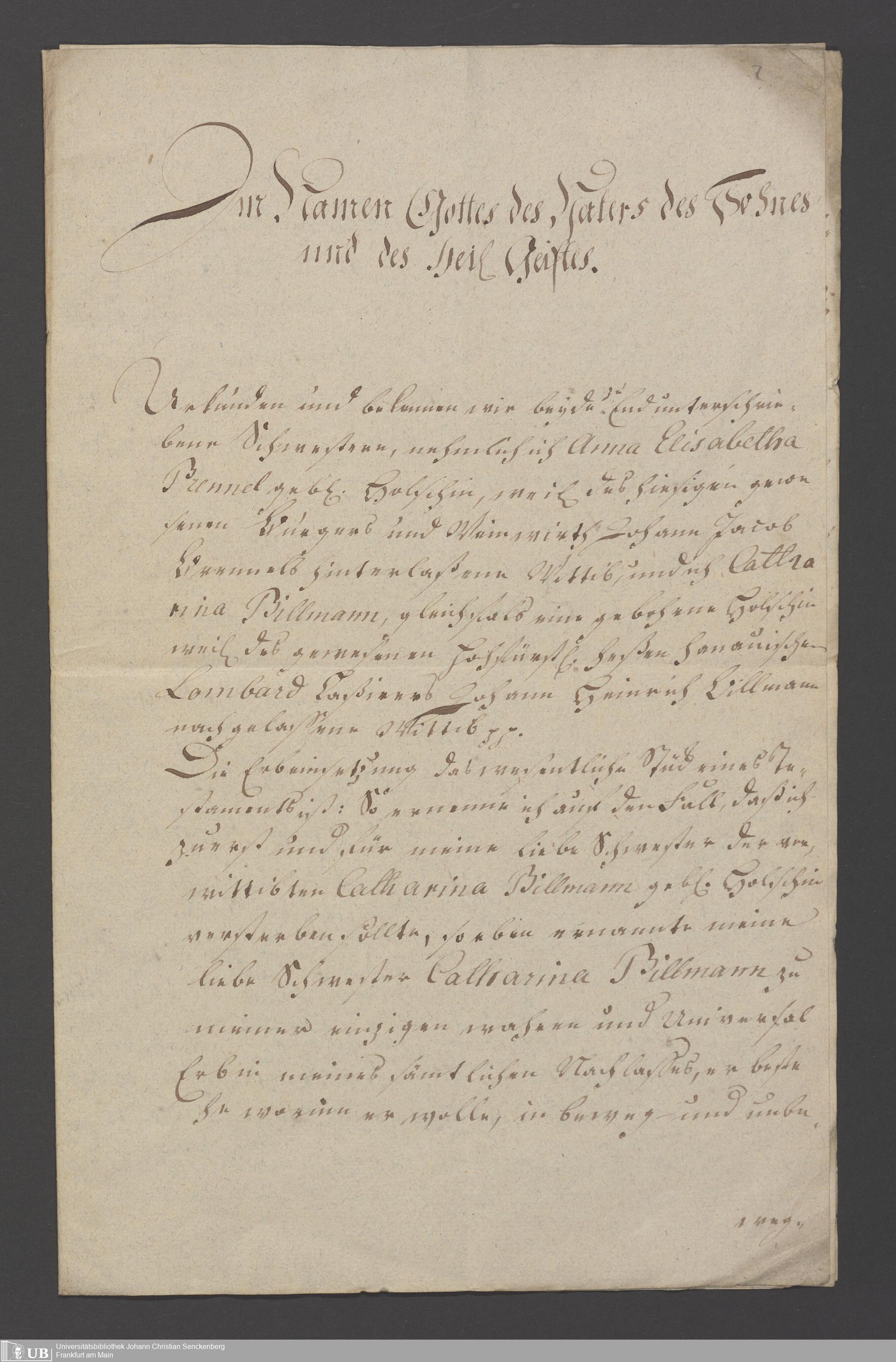 B 5 Dr. Senckenbergische Stiftung, 116 - Legat Brennel-Billmann