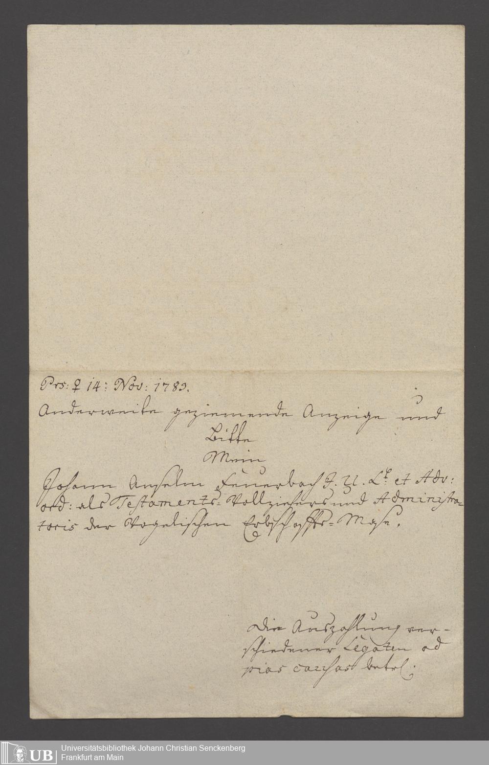 B 5 Dr. Senckenbergische Stiftung, 117 - Legat Vogel